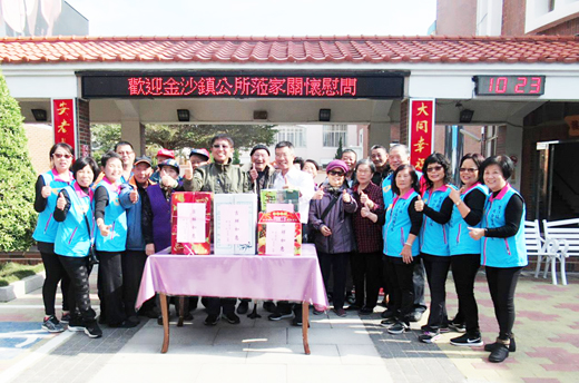 金沙鎮鎮長吳有家偕同社會課人員、志工隊等一行人,日昨前往大同之家關懷長者及致贈水果禮盒,向長輩們祝賀新年快樂,受到主任楊志斌及長者們的熱烈歡迎及感謝。 吳鎮長親切的與院內的長輩們話家常及帶領社會課同仁和志工隊參訪大同之家孝親房和家史館,對於機構內部逐年翻新、改善及院內環境越來越好,讚譽有加。許多社會課同仁並對於家史館內的老照片牆之構想與設計,不但可以保存長者年輕時的丰采和家人共處的快樂時光記憶,還有那個年代和家人在照相館內拍照的回憶等等,並對於還有長輩提供民國四十三年歡送同學赴台升學的合照及民國五十四年春節全家人的留影紀念照,嘖嘖稱奇,直說:「太珍貴了,一定要把這老照片牆模仿回去」,讓更多的鎮民,可以把珍藏的時光記憶,完整地保存下來。 大同之家主任楊志斌曾經擔任金沙代理鎮長,與志工隊建立深厚友誼,看到他們的到來倍感親切,也感謝吳鎮長及社會課人員蒞臨大同之家,致贈水果禮盒及向長輩們祝賀新年快樂。