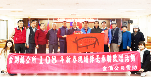 春節將近,金湖鎮公所舉辦贈送春聯活動,邀請地區包括吳宗陵、陳玉貞、陳應德、陳炳仁、陳有利、呂光浯、余鳴、許維銘、翁坤成、許夢麟、鄭有諒、許永贊、張素勤、李麒麟、孫國粹等知名書法家,在鎮公所撰寫春聯供民眾免費索取,吸引大批民眾前來,感受年味。 金湖鎮長陳文顧表示,年節將近,為使轄境內單親家庭、身障人士、獨居老人等弱勢家戶也能感受到政府的關懷,特別聯合金湖鎮代會、金門縣書法學會辦理此次贈送春聯活動,邀請金湖鎮民共渡農曆春節,同沾喜氣,免費提供需要的民眾自行索取春聯,也讓鎮公所喜氣洋洋、充滿年味。