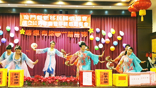 深耕金門十年了,金門縣新移民關懷協會舉行「成立十週年慶暨年終感恩餐會摸彩活動」,活動在二十多位新移民的旗袍走秀中登場。 縣長楊鎮浯及其夫人張婭玲、財政處長孫國智、議員張雲德、歐陽儀雄、李應文、金寧鄉長楊忠俊、金沙鎮長吳有家、前議長洪麗萍、前議員陳玉珍以及多位鄉鎮代表紛紛到場祝賀。 金門縣新移民關懷協會理事長吳金玲期許大家共同團結,讓協會更加成長。 縣長楊鎮浯的夫人同樣也是新移民,楊鎮浯表示,新移民從原生地來到不同的國家生活,一路走來所經歷的事他都了解,因此只要新移民有需求,縣府能力所及都會全力協助,盡力幫助大家融入金門這塊土地。 而其夫人張婭玲也期許,新移民姊妹們可以多互動,彼此之間多從事公益活動,也能夠藉此盡快融入金門社會之中。
