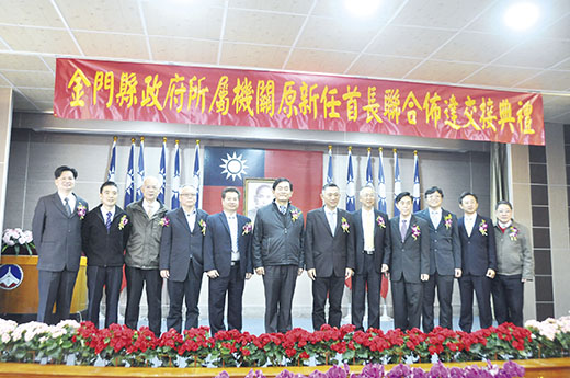 縣長楊鎮浯昨日主持上任後第二波縣府暨所屬機關原新任首長聯合佈達交接典禮,他期勉新上任首長,不管在哪個位置服務,都要在工作崗位上把角色扮演好;而職務的調整調動,就是要增加中生代主管歷練更廣、更豐富,未來承擔更大責任。 楊鎮浯說,政務官事務官在縣府團隊都不可或缺,這次輪動調整多半是中生代主管,最大考量是讓他們豐富歷練,3、5年後可以承擔大任,因此他期待很大,並表示這次調動不會是「最後一次」。 楊鎮浯重申,縣府不會是一言堂,任何好的意見一定可以充分溝通;政治與選舉也絕不會進到縣府團隊,他並保證,即便4年後他要競選連任,「不會有府內任何一位同仁需要協助我選舉」。 金門縣政府昨日上午十時起,在縣府一樓多媒體簡報室舉行108年度金門縣政府暨所屬機關原新任首長聯合佈達交接典禮,縣府暨所屬機關主官管和多位鄉鎮長、鄉鎮民代表會主席,以及縣府暨機關同仁代表出席觀禮,讓現場座無虛席。 在縣長楊鎮浯宣讀佈達任命後,並在縣府主計處處長王崑龍擔任監交人,九位縣府暨所屬機關新任主官也進行和原任主官印信交接,即宣誓履新。 縣長楊鎮浯致詞時,對資深前輩秘書長林德恭、稅務局長王漢文、社會處副處長許美鳳等人退休,感謝他們過去兢兢業業、盡忠職守,為縣政打下基礎的付出和努力。對於新任縣府秘書長張忠民學養、操守和歷練俱佳,是縣府文官之首最適當人選,擔任幕僚長承接重擔,也表達感謝之意。 楊鎮浯表示,金門正處在起飛和轉折階段,決策品質很重要,縣府不是一言堂,需要團隊一起貢獻心力。而新任教育處長羅德水,長期致力基礎教育環境改善,期將教育本質拉到教育環境改善,讓教職同仁有好的教學環境,也讓下一代有好的受教環境,打造更優質教育品質提升。另外,新任社會處長董燊,在社會資源龐大,社福更是施政重點,盼藉重其長才盤點金門龐雜的社會資源,讓金門社會福利不再是民粹的社福。 新任秘書長張忠民代表致詞時,感謝縣長的信任,交賦幕僚長的任務,協調縣府團隊,將以顧客至上、企業化之精神,真實面對問題、解決問題,為民服務,厚植社會資本;他冀望團隊各部門,以政府再造,新公共管理的精神,對公務處理流程,能檢核作巨大改變,做事而不做官,更有效能的回應社會的需求。 張忠民也衷心建議部門主官管,體認「主官負單位成敗責任」的真諦,有好的領導方向,並遵循縣長的施政主軸,秉承縣長的提示,尊重專業,建構團隊合作,提昇團隊力量的發揮,推動政務,新的團隊定能竭力以誠的為鄉親戮力服務。 縣府暨所屬機關新任主官,包括:秘書長張忠民、教育處長羅德水、社會處長董燊、港務處處長何佩舉、公共車船管理處處長王垣坤、動植物防疫所所長莊謙恭、畜產試驗所所長許績鑫、陶瓷廠廠長許一傑等;他們的學經歷如下: 新任秘書長張忠民,現年65歲,國立中山大學公共事務管理學系碩士畢業。歷任金門縣政府科長、秘書、參議、處長、本縣地政局局長、本縣自來水廠廠長、金門縣議會主任秘書、 秘書長等職務。 新任教育處長羅德水,現年47歲,淡江大學中國大陸研究所碩士,屏東師範學院社教系畢業。歷任台北縣石門國小、台北市蘭雅國小、台北市北投國小教師,並長期參與教師組織運作,擔任全國教師會政策部主任、文宣部主任;全國教師工會總聯合會政策部主任、國會聯絡人等職務。 新任社會處長董燊,現年57歲,國立體育學院體育研究所體育學碩士、北京體育大學教育學博士。歷任國立高雄科學技術學院金門分部運動休閒管理學系主任,國立金門技術學院主任秘書、學務長、運動休閒管理學系主任,國立金門大學副校長、學務長、管理學院院長、就業輔導暨校友服務中心主任等職務。 本縣港務處新任處長何佩舉,現年47歲,國立金門大學土木工程(學)系碩士畢業。歷任金門縣政府科長、金門縣港務處技士、技正、副處長及交通部航港局中部航務中心技正等職務。 本縣公共車船管理處新任處長王垣坤,現年45歲,國立臺北科技大學建築及都市設計學系碩士畢業。歷任金門縣政府技士、技正、科(課)長及副處長等職務。 本縣動植物防疫所新任所長莊謙恭,現年65歲,國立中山大學推廣教育公共事務研究班碩士畢業。歷任金門縣動植物防疫所技正、所長及金門縣畜產試驗所技正、所長等職務。 本縣畜產試驗所新任所長許績鑫,現年47歲,銘傳大學應用語文學院中國文學研究碩士畢業。歷任福建省金門縣地政事務所測量員、技士、金門縣地政局技士、課員、金門縣政府科(課)長、副處長、金門縣港務處副處長、金門縣養護工程所所長及金門縣陶瓷廠廠長。 本縣陶瓷廠新任廠長許一傑,現年57歲,銘傳大學公共事務學系碩士畢業。歷任金門縣公路監理所課員、技正、金門縣政府課長、金門縣金門日報社社長、金門縣陶瓷廠廠長、及金門縣公共車船管理處處長等職務。 金門縣政府建設處處長職務自108年1月16日起由縣府秘書長張忠民兼代、行政處處長職務由縣府參議張瑞心代理、本縣稅務局局長職務由縣府參議翁自保代理,並至人員遴補之日止;另原任本縣動植物防疫所所長文水成調任縣府建設處副處長,原任本縣港務處處長王登緯調任本縣環境保護局副局長職務。