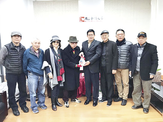國立金門大學今年續聘國際藝術大師李錫奇擔任該校榮譽講座教授,校長陳建民昨日親自將聘書交予李錫奇,並與李錫奇、古月夫婦、和大陸第一位寫台灣文學史的知名文學書法家劉登翰等學者,共同討論藝術教育的議題。學者認為金大可以朝整合兩岸藝術文化交流平台的方向走,一旦落實,到時不僅金大成為兩岸亮點,也可深耕金門藝術教育文化,提升藝文水平。 李錫奇夫婦和好友劉登翰,昨日上午由黃世團、盧根陣、林水美、盛崧俊、孫國欽等人陪同前往金門大學,受到校長陳建民和行政主管的歡迎。 金大續聘李錫奇擔任榮譽講座教授,陳建民說,李錫奇是享譽國內外的藝術大師,很榮幸能續以榮譽無給職方式聘請李錫奇大師回金大,這是學子在金大求學的一大佳音。 李錫奇一行針對未來在金大的講座規劃以及陳展想法,與陳建民進行討論,也對持續提升地區藝文水平提出相關的倡議。 古月是台灣知名詩人,古月表示,金大具有教育影響力,可以扮演提升金門藝文發展的重要火車頭,藉由深耕藝術教育,刺激學子的藝文活力、詩歌創作等作為,讓學子在文學、藝術、音樂等面向上能獲得更多元素的滋養,帶領金門的藝文風氣向上提升。 劉登翰也建議藉由藝術講座的舉辦,可以同時邀約台灣、大陸兩地藝文好友一起共襄盛舉,共同為提升金門的藝文風氣做出努力。