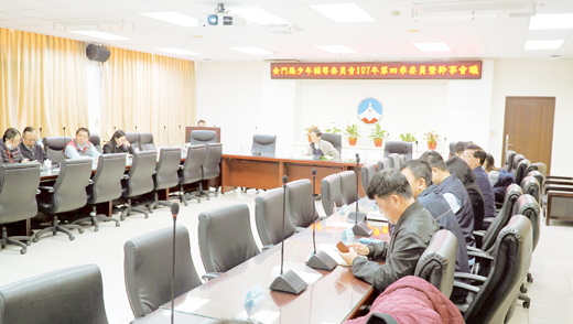 金門縣政府昨(十七)日召開「少年輔導委員會一○七年第四季委員會暨幹事會議」,邀集少年輔導委員、相關單位承辦人員等人出席,針對少年輔導各項缺失提出於會議中進行共同商討,尋找解決之道。 由金門縣警察局辦理的「少年輔導委員會一○七年第四季委員會暨幹事會議」,於昨日下午四時起,在金門縣政府第一會議室舉行,會議由縣府參議翁正義主持,委員劉耀欽(兼任總幹事)、張智芳、李桂平、莊錦智、劉香蘭、黃書星、李品萱、謝惠婷、王志仁等、金城分局長郝心誠、金湖分局長張文峰、金城分局隊長蔡其豪、教育處、社會處、校外會、衛生局、警察局等相關單位承辦人員出席,共同參與討論。 會議首先針對上次會議裁示事項是否解除列管進行討論,第一項案件為「請各單位積極配合辦理「暑期保護青少年青春專案」工作項目,以維護青少年身心健康發展,預防偏差行為及被害事件發生」,衛生局對此表示,因該案執行時間已過,建議解除列管。 翁正義表示,未成年人吸菸很多,常常晚間在青少年出沒的地方都可以看到,因此防治很重要,他建議執行專案的時候不要流於形式,類似情事應夜間加班出外查訪才可了解,建議做事情要做到位,但他也提醒在查察時,程序上要注意,可與縣府法務單位及警察局合作。 第二案「為協助本縣偏差行為少年,請教育處評估設置中途學校」,教育處長羅德水表示,地區青少年兒童問題,嚴重狀況應超乎他了解,他也願意面對。 經與會討論了解後,設置專責學校確有其限制之處,故翁正義表示,尊重相關單位予以解除列管,但後續問題應再詳細討論。
