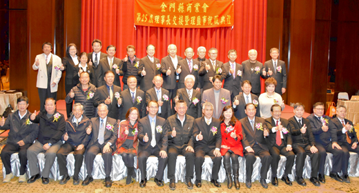 金門縣商業會昨舉辦「第25屆理事長交接暨理監事就職典禮」,由李有忠接棒。縣長楊鎮浯親臨現場頒發當選證書給李有忠並致詞指出,高雄「韓流」外溢效應擴及全台,各縣市無不期盼再現經濟榮景,金門也不例外。他將此列為任內首要工作,並期許和金門縣商業會及全體會員攜手為地區營造更好的商業及就業環境;尤其當面臨全球貿易、連鎖企業的市場威脅時,能引領商家順勢轉型迎接新商機,也讓金門各界欣欣向榮,商業蓬勃發展。 成立已110年歷史的金門縣商業會,昨(17)日下午6時起假金湖飯店舉行「第25屆理事長交接暨理監事就職典禮」,縣長楊鎮浯到場頒發當選證書給縣商會新任理事長李有忠。 昨日現場貴賓雲集,另包括金門縣議會副議長周子傑、金門縣議員王秀玉、金門酒廠董事長李增財,金門縣農會理事長蔡水游,金門漁會理事長吳安樂、金門總工會理事長曾宗慶,金門中華電信經理姜世榮、金門地檢署檢察長毛有增,前議員陳滄江、陳玉珍,前金門縣政府秘書長林德恭等,金門縣政府建設處副處長文水成、社會處處長董燊、金湖鎮鎮長陳文顧、金沙鎮鎮長吳有家等以及金門縣商業會顧問陳紀元,台中市商業會理事長賴正庭,和金門在地產業、社團代表等齊聚一堂獻上祝福。 縣長楊鎮浯致詞時表示,全台刮起高雄「韓流」旋風,每個縣市都在思考如何再現商業榮景、優化就業環境,金門也不例外。因此,任內第一件事就是要協助商家創造更好商業環境及營造更好的就業環境,而這一切必需仰賴商業界的好朋友全力協助;未來有需要縣府協助之處,也將義不容辭全力協助。 另外,伴隨全球化貿易模式及社會結構改變,既然大型連鎖商店進入難以抵擋,如何讓商家趁勢轉型迎接新商機是政府之責,同時也是未來極需商會理事長李有忠及全體理監事共同協助和努力的目標。 李有忠也致詞指出,自己有幸能夠以肩負著一份歷史史命接下棒子,將竭盡所能以創造金門縣商業會的光榮歷史。也期許新任團隊,秉持商業會章程所訂任務;會員代表齊力投入會務興革,謀求會員福祉,促進商業發展,以不辜負商業界先進提攜,並促進金門縣商業會蓬勃發展,開創新機。 金門縣商業會新任理監事名單如下:理事長:李有忠,副理事長:陳松泉,常務理事:蔡育仁、許開國、蔡壬癸、陳滄江、趙 康,理事:陳金慶、孫惠文、李國鼎、吳增棟、洪煒翔、郭永隆、許堅墩、李水發、翁維駿、楊俊偉、楊鑫右、鄭雪霞、方媽義、劉麗如,常務監事:顏少棠,監事:顏及人、陳聰泉、俞全和、盧志權、陳再德、許永順。