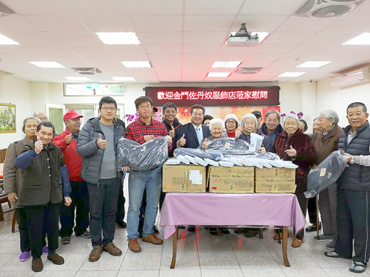 在冷颼颼的歲末寒冬,紐約客服飾有限公司佐丹奴金門店,老闆辛文盛及合夥人李鍾靈,日昨由金門縣政府社會處處長董燊陪同前往金門縣大同之家,致贈長輩112件發熱衣及幼童6件新穎的冬衣外套,溫暖長者及幼童的心,善盡企業對於社會弱勢團體之關懷與祝福。 金門佐丹奴服飾店老闆辛文盛表示三年前曾前往大同之家致贈院童每人一件新穎外套。這些年來,自己也一直本著「取之於社會,用之於社會」的企業精神,希望可以拋磚引玉,讓社會可以更加重視弱勢團體的困境與需要,藉此傳播愛心及善盡社會責任,希望帶給院內的長輩及幼童,感受到社會濃濃的愛心與關懷。 老闆辛文盛並感謝此次是在金門縣政府社會處處長董燊的協助之下,來到大同之家致贈發熱衣及冬衣外套。大同之家楊主任感謝紐約客服飾有限公司佐丹奴金門店的義舉,頒予感謝狀及感謝老闆辛文盛的義舉,讓長輩及幼童感受到社會濃濃的溫情、善心和祝福。