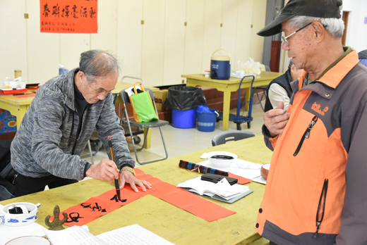 再過數天,大家即將迎接農曆新年,金城鎮公所特別於昨(十三)日上午起,舉辦「諸事順利好運到」金城鎮公所春聯揮毫活動,邀請到地區十二位書法家現場揮毫,提供給鄉親索取,拿回家除舊布新迎接新年。 今年的年初一就在二月五日,昨日的春聯贈送活動也宣告新年的腳步近了,昨一大早就吸引了不少地區鄉親,起了個大早前往金城鎮公所來索取春聯,為接下來開始的大掃除工作預做準備,以歡慶農曆新年。已經協辦金城春聯揮毫活動多年的金門縣文藝協會理事長張君玉說,文藝協會今年也再度號召了十二位地區書法家同場揮毫,總數贈送出約四千多副的春聯,讓鄉親們可以來為年節增添喜氣。 農曆金豬年將至,一場由金城鎮民代表會指導,金城鎮公所主辦,金門縣文藝協會承辦的「諸事順利好運到」金城鎮公所春聯揮毫的活動,於昨日上午九時至下午五時為止,在金城鎮公所七樓展演廳舉行。金城鎮公所的春聯贈送活動為地區年前的新春活動打頭陣,加上昨日正好是週日假期,因此上午九時的活動一開始,便陸陸續續有民眾前往,約一小時左右,就已經發出了近百個號碼牌了,民眾手上拿著公所提供的紅紙,依照號碼及在志工引導下,或是根據自己喜愛的風格,由現場的書法家們揮毫贈送墨寶。 昨日一早就前往索取的民眾表示,過年期間,家家戶戶貼春聯是重要習俗,從報載中得知昨日金城鎮公所有贈送活動便前往索取,可以得到書法家墨寶來為家中除舊佈新,迎來一番新氣象,讓不少索取的民眾對活動相當讚賞。而昨日參與活動的書法家們,總共有十二位,分別是:張君玉、張水團、吳鼎仁、孫國粹、王林進、張長華、曾宗慶、盧俊傑、歐陽玉梅、王志雄、林志斌、盧志福、蔡阿明等人。 金門縣文藝協會理事長張君玉表示,金城鎮公所開了地區春聯贈送的先河,而文藝協會與金城鎮公所合作,於農曆春節前夕舉辦春聯贈送的活動也已經有二十多年了,透過號召書法家們來服務鄉親,而他也感謝金城鎮公所方面,對於藝文活動的支持。昨日現場,書法家們也都會預先準備了千餘副的春聯,這些都是與會的書法家們在活動開始前,利用工作之餘的時間,於假日休息時間先行書寫預備的,目的是方便提供給長輩,或是行動不便的人士索取,以避免讓他們久候。而鄉親依序叫號選擇自己喜歡的書法家來索取墨寶。 昨日還有民眾正好恰逢新居落成,也特別利用機會到場索取吉祥話,為入厝求取平安,張君玉指出,地區送神、宗廟奠安、新居落成都需要用到春聯的張貼,因此有新居入住的需要,通常會一些喜氣祝福、討吉利的詞句。此外,也有人有自己的貼春聯的原則,因此會自己裁切春聯,並要求指定的對聯。張君玉還說,從春聯的大小,也可以看出住家的格局,有些房子大、挑高,因此一般七字的對聯就略顯不足,所以若是九個字以上的對聯,通常宅邸都是比較富麗堂皇,有時候也可以從中了解到索取者是否為大戶人家。 新任的鎮長李誠智,昨日一早便到場,與志工們一同招呼民眾,李誠智表示,昨日春聯贈送的活動,金城鎮轄區內有部分獨居長輩、低收入家庭或是弱勢家庭等,有些人不克前往索取,金城鎮公所方面也會配合年節前社政慰問的活動,一併贈送名家墨寶的春聯,讓地區弱勢與獨居長輩們也能夠感受到新年的過節氣氛。此外,李誠智還親自揮毫,寫下春、福二字來討個吉利,並且一一親自贈送與會的書法家們毛筆,感謝他們多年熱心來服務鎮民。 李誠智除了感謝金門文藝學會多年來協助金城鎮公所舉辦揮毫,贈送給予需要的民眾,讓金城鎮展現出豐富的文化底蘊,他同時也向鎮民們拜早年,祝賀鄉親們新年快樂。