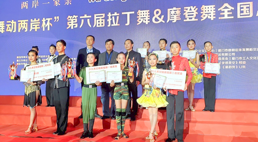 金門縣國標舞代表隊,赴陸參與「2019舞動兩岸盃-兒少國際標準舞蹈大賽」,與來自各國78支勁旅,2532位選手同台競技。金門代表隊選手表現可圈可點也為金門抱回佳績,此次共榮獲「51座冠軍獎盃、29座亞軍獎盃、21座季軍獎盃」,並再次以最績優成績奪得團體冠軍獎。金門縣國標舞代表隊成員6至14歲皆有,再次展現精湛「舞」力,並用舞蹈為金門爭光,也打響金門的知名度。 「2019舞動兩岸盃-兒少國際標準舞蹈大賽」,由亞洲體育舞蹈理事長指導,廈門市政府主辦,廈門市海峽兩岸文化協會承辦,大陸各省市的舞蹈專業學校協辦。金門縣國標舞蹈代表隊選手,於107年12月30日,在金門體育會理事長唐麗輝(議員)暨金門縣舞蹈協會理事長林明麗領軍下,連同教練王國兆、陳淑珍老師及家長。志工團等共計40餘人赴陸並至廈門市工人體育館參賽。 此次,金門縣國標舞蹈代表隊選手成員6歲至14歲,在該賽事中,與來自港澳、大陸各省市、台灣等地計78個代表隊,共計2532位選手同場競技。歷經20小時緊張激烈的比賽過程,不論初賽、複賽、決賽,金門這群小小「舞」功高手們,表現都相當亮眼,並且技壓群雄,榮獲得60位國際評審們的青睞及高度肯定,勇奪了51座冠軍獎盃,幾乎包辦整場賽事所有組別中近半的冠軍獎項,也再度以最績優的成績抱回團體冠軍的殊榮。 關於此次賽事,金門體育會理事長唐麗輝(議員)表示,此次賽事共計有118個組別,採淘汰賽制,經初賽、複賽、決賽後取前6名。選手們一路挺進,每一座獎盃都來之不易,不僅僅需要有出色的舞技,同時要具備非常好的專注力、體力、肌耐力與表現力,而只有不被淘汰才能順利的進入決賽。特別是在決賽中又將遭遇各代表隊最強的精英,選手無不卯足全力,奮戰到底。這群小學選手相當不容易,能夠在場中穩住,以精彩舞技,沉著應戰,最後脫穎而出,在各個組別中拔得冠軍頭籌。唐理事長也指出,在場為選手們加油的同時,也要為這群金門戰地孩子的運動競技精神感到無比驕傲,全體表現可圈可點,成果令人喝采,不只為自己獲取佳績榮譽,也用「舞」功,大大為金門爭光。 金門國標運動舞蹈代表隊佳績如后:(S:桑巴舞、C:恰恰舞、R:倫巴舞、J:捷舞) ◎張承駒:14歲。 個人組:男子SCRJP五項組第一名、CRJ三項組第一名。 雙人組:精英五項組第三名、CR二項組第一名、CRJ三項組第三名、C單項組第一名、J單組第一名、R單項組第一名。 ◎薛祖宇:14歲。 個人組:男子CR二項組第二名。 雙人組:R單項組第一名、CRJ三項組第二名、C單項組第二名。 ◎楊潔欣:14歲。 個人組:女子SCRJP五項組第一名、CR二項組第一名、R單項組第一名、C單項組第二名、S單項組第二名。 雙人組:R單項組第一名。 ◎唐嘉琝:11歲挑戰13歲。 個人組:女子CRJ三項組第一名、CR二項組第一名、S單項組第一名。 雙人組:精英五項組第三名、CR二項組第一名、CRJ三項組第三名、C單項組第一名、J單組第一名。 ◎林冠佑:10歲挑戰13歲。 個人組:男子SCRJ四項組第一名、CR二項組第一名。 雙人組:精英五項組第五名、SCRJ四項組第一名、CR二項組第三名、CRJ三項組第二名、C單項組第一名、J單組第一名、R單項組第一名。 ◎林冠均:9歲挑戰12歲。 個人組:男子SCRJ四項組第五名、CRJ三項組第五名。 雙人組:SCRJ四項組第二名、CR二項組第一名、CRJ三項組第一名、C單項組第二名、J單組第二名、R單項組第四名。 ◎許瀛文:12歲。 個人組:女子SCRJ四項組第一名、CRJ三項組第一名、CR二組第一名、S單項組第一名、C單項組第一名、J單組第一名、R單項組第一名。 雙人組:R單項組第一名、CRJ三項組第二名、C單項組第二名。 ◎洪憶萱:12歲。 個人組:女子S單項組第二名、C單項組第二名、CR二項組第二名、SCRJ四項組第三名、J單項組第三名、R單項組第三名、CRJ三項組第三名。 雙人組:CRJ三項組第三名。 ◎王麒雅:12歲。 個人組:女子C單項組第三名、S單項組第三名、、CR二項組第三名、SCRJP五項組第四名。 雙人組:C單項組第一名、CR二項組第三名。 ◎黃詩蘋:11歲。 個人組:女子CR二項組第一名、C單項組第一名、J單項組第一名。 雙人組:精英五項組第五名、SCRJ四項組第一名、CRJ三項組第二名、C單項組第一名、J單項組第一名、R單項組第一名。 ◎薛祖航:10歲。 個人組:男子CR二項組第一名、SCRJP五項組第三名。 雙人組:CRJ三項組第四名、C單項組第四名。 ◎楊子函:10歲。 個人組:女子CR二項組第一名、CRJ三項組第二名、C單項組第一名、J單項組第一名、R單項組第二名。 雙人組:CRJ三項組第四名、C單項組第四名。 ◎許芸瑄:10歲。 個人組:女子R單項組第一名、CRJ三項組第二名、C單項組第二名。 雙人組:SCRJ四項組第二名、CR二項組第一名、CRJ三項組第一名、C單項組第二名、J單組第二名、R單項組第四名。 ◎鄭茹勻:10歲。 個人組:女子SCRJ四項組第四名、CRJ三項組第四名、CR二項組第五名。 ◎蔡妤潔:10歲。 個人組:女子S單項組第一名、C單項組第二名、CR二項組第六名。 雙人組:CR二項組同步舞銀牌獎。 ◎陳玟安:10歲。 個人組:女子S單項組第二名、R單項組第四名。 雙人組:CR二項組同步舞一等金牌獎。 ◎王珞芩:9歲。 個人組:女子C單項組第二名、SCRJ四項組第四名。 ◎陳薇淇:9歲。 個人組:女子SCR三項組第四名、CR二項組第三名、C單項組第二名、S單項組第四名、J單項組第四名、R單項組第五名。 雙
