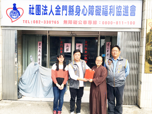 春節前夕,金門縣佛教弘法基金會(海印寺)辦理寒冬送暖活動,由海印寺法師致贈慰問金給金門身心障礙福利協進會,由金門身心障礙福利協進會理事長黃鉦峰代表接收,並陸續轉發給需要的身障家庭。 連日來,金門身心障礙福利協進會理事長黃鉦峰也受託開始巡迴各鄉鎮,轉發海印寺慰問金。 黃鉦峰表示,財團法人福建省金門縣佛教弘法基金會(金門太武山海印寺)為關懷本縣各鄉鎮生活較為清苦之身心障礙民眾,自103年迄今,於農曆春節前都會協請社團法人金門縣身心障礙福利協進會轉發慰問金。 而接受海印寺愛心暖流照護的這些弱勢鄉親,也藉由黃鉦峰之口,對海印寺充分發揮佛教大慈大悲的菩薩精神,由衷表示感謝之意。