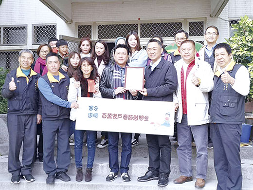 旅台鄉親環遊國際旅行社有限公司負責人李沃耀、陳素蘭伉儷,於昨日返回金門探親之際,慷慨解囊助家扶弱勢家庭,捐出一百萬元給金門家扶中心,做為家扶中心受扶助家庭的春節慰問金,每戶家庭將可獲得五千元的大紅包,預計今年的春節這些弱勢家庭們,將可歡欣喜樂團聚圍爐開心的過春節。李沃耀伉儷此筆寒冬送溫暖的善款,由金門家扶中心扶幼委員會李根遠主委,和楊肅謙、郭金堡等家扶中心扶幼委員們以及中心主任李桂平共同歡喜接受,金門縣長楊鎮浯、前立委楊應雄伉儷及李有忠先生共同見證。 金門縣長楊鎮浯表示,金門鄉親李沃耀、陳素蘭伉儷,事業成功返鄉濟弱扶貧的善行義舉,給予高度的肯定以及公開的讚揚。楊鎮浯縣長並以金門縣大家長的身分,代為頒發家扶中心感謝狀給李沃耀、陳素蘭伉儷,感謝他們事業經營有成之際,仍沒有忘記家鄉的弱勢家庭和兒童,點燃社會關懷地方弱勢的希望火花,讓這些家庭及兒童能感受到社會的關心和溫暖。 金門家扶中心扶幼主委李根遠指出,李沃耀伉儷在台攜手同心共同經營國內外旅遊業務事業有成,但夫婦二人宅心仁厚從不忘家鄉的弱勢族群。此次返鄉義助家扶中心的受扶助家庭,可謂代表著金門人的傳統優良美德,可媲美早年金門人下南洋艱辛奮鬥的例子,事業成功之後,衣錦返鄉回來金門興學助鄉里的事蹟一樣,是金門子弟的好榜樣。 金門家扶中心主任李桂平表示,前晚金門天氣忽然降溫特別的冷,東北季風也吹得呼呼作響,今年無異是社福寒冬冷颼颼,各項募款皆不易。剛完成的扶幼助學園遊會,活動中受扶助家庭大賣場禮券籌集並不順利,緊接而來馬上就要過年了,年菜及特別困境家庭的春節慰問金尚無著落。在家扶中心全體工作人員還在發愁如何是好之際,李沃耀伉儷即時的寒冬送溫暖,解決了今年春節金門家扶中心的窘境,也帶給了每一個受助的弱勢家庭及兒童們,能感受到今年的冬天特別的暖和。金門家扶中心目前約扶助二百個家庭共計三百三十個兒童,此筆每戶五千元的慰問金,將於一月底前發放給受扶助家庭,做為籌備春節過節用品之用,屆時無論在外求學的遊子,或者是在家守候的阿公阿媽和媽媽們都可團聚在一起,外面的寒風被圍爐的炭火所驅散,一家人開心的細數今年的風風雨雨,因為社會的關懷帶給了這些弱勢家庭寒冬的溫暖。 金門家扶中心感謝李沃耀、陳素蘭伉儷,此次「寒冬送溫暖百萬家戶春節慰問金」活動,送出關懷送出溫暖,澤被金門地區的弱勢家庭和兒童。這個愛心活動的成就,就有如一部兒童夢想製造機,讓這些兒童們有機會留住一個快樂春節的兒時回憶。