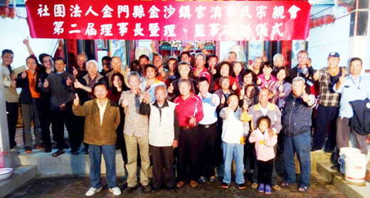 社團法人金門縣金沙鎮官澳李氏宗親會經召開第二屆第一次會員大會,通過107年度經費收支決算案,108年工作計劃及經費收支預算案和組織章程入會費修訂等五案,並進行理監事改選,由李昭來當選理事長。 社團法人金門縣金沙鎮官澳李氏宗親會日昨召開第二屆第一次會員大會,通過五項提案,並進行理監事改選,由李昭來當選理事長也揭曉第二屆理監事成員。金沙鎮官澳李氏宗親會於12月22日舉辦理事長暨理監事頒證儀式,一一頒發當選證書給理監事成員,金沙鎮官澳李氏宗親會第二屆理監事名單如后: 理事長,李昭來。常務理事,李甘桐、李昭貽。理事,李鴻基、李昭舜、李招文、李昭鵬、李康安、李昭祿。候補理事,李招譽、李招達。常務監事,李婭。監事,李昭紫、李寧春。候補監事,李忠霖。總幹事,李應文。會計,李易忠。