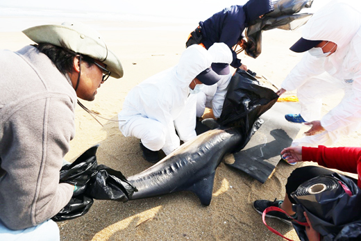 金馬澎分署第九岸巡隊第一巡邏站29日在金沙鎮大地海灘發現一隻死亡的罕見「長吻真海豚」,外觀大致良好,下腹部挫傷,死因不明。金門縣政府表示,這種海豚台灣地區相當少見,將進行後續處理。 金馬澎分署第九岸巡隊第一巡邏站於29日中午11點57分,在金沙鎮大地岸際發現1隻死亡鯨豚,該隻鯨豚疑似為長吻真海豚;長約203公分、高32公分、寬約22公分、整體外觀大致良好,下腹部挫傷,死亡原因不明。後續由金門縣政府農林科協助處理。 第九岸巡隊表示,第一巡邏站執行巡邏勤務時,於金門縣金沙鎮大地岸際沙灘處發現1隻死亡鯨豚屍體,隨即通報海巡署第十二巡防區勤指中心,由勤指中心通報中華鯨豚搶救協會、金門縣政府農林科及動植物金門檢疫站業管人員前往處理。 經縣府農林科鐘立偉科長比對認為,應為「長吻真海豚」,「長吻真海豚」為相當罕見的物種,主要食物為魚與烏賊。喜歡成群結隊,為所有鯨豚類中群居性最顯著者,常見的族群大小為10至500隻,最多可達上千隻。十分有活力,時常鳴叫與在水面跳躍、翻騰,喜歡與船隻同行。通常出現在水溫攝氏10至28度、水深180公尺以內的外海,封閉海域或大陸棚也曾有紀錄。洄游遷徙路線不明,有些地區全年可見,普遍分布於全球的溫帶、亞熱帶與熱帶海域。臺灣本島東北部的宜蘭海域有紀錄。金門縣政府表示,近年未有相關的通報紀錄,此種海豚台灣很少見,將交由相關研究單位研究。 海巡署呼籲,保護保育類動物是我們每一個居住在這塊土地上人們的責任,為了給予後代子孫更豐富的自然資源,除不應濫捕濫殺保育類動物外,更應積極地愛護我們生存的環境。若民眾有遇到鯨豚擱淺的狀況,請立即撥打118免費報案專線,海巡署將於第一時間,前往搶救。