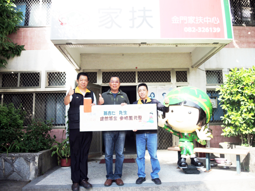 金門家扶中心寒冬湧暖流,家扶建館又增生力軍,聯嘉地政士事務所負責人地政士翁杏仁,於日昨由金門家扶中心扶幼主委李根遠陪同,前往金門家扶中心,個人捐出家扶扶幼館建館基金30萬元,協助金門家扶中心興建扶幼兒童館。此筆建館基金由金門家扶中心扶幼主委李根遠以及中心主任李桂平,代表金門家扶中心共同接受,家扶扶幼館的完成目標又可向前邁進。 地政士翁杏仁謙虛的表示,經由李根遠主委介紹說明才了解,金門家扶中心為民間機構,經費皆為自籌,而家扶中心目前最大的工作目標,是興建屬於一個自有的扶幼館,因此個人捐輸30萬元來協助金門家扶中心,對完成這個艱鉅任務貢獻一份小小的心力。 金門家扶中心扶幼主委李根遠指出,翁杏仁地政士是金門第一家成立的土地代書事務所,服務鄉民各項土地相關的業務,可以稱是金門地區土地代書的祖師爺,也是他的前輩。此次捐助家扶扶幼館建館經費的行動,也是翁杏仁心中一直掛著的心願,今天終於如願以償的圓了心中懸掛的一份心意,也造就了家扶扶幼館建館的目標,更向前邁進一大步。 家扶中心主任李桂平進一步說明,全國二十多個家扶中心,目前只有金門家扶中心仍寄人籬下租賃縣府的房舍執行業務,希望透過地方企業及地區的鄉紳、善心人士的協助,把金門家扶中心的扶幼館建造起來,以推動更多的弱勢兒童及家庭的照顧工作。更需要及歡迎社會大眾發揮螞蟻雄兵的力量,無論多少的力量積沙成塔,終有達成目標的一天。凡贊助一萬元及以上者,皆會於建館落成紀念碑上銘刻大德姓名,以見證在金門兒童福利工作上所貢獻的一份力量。金門家扶中心扶幼館興館護幼專線,歡迎撥打082-326139洽翁小姐。