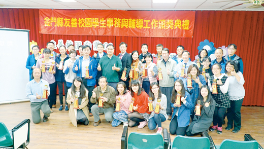 金門縣政府一○七年獎勵友善校園學生事務與輔導工作績優學校,昨(二十一)日在金湖國中舉辦頒獎典禮,由縣府教育處處長李文良親自頒獎,李文良肯定獲獎的學校,在致力於推動友善校園上的努力與積極,並希望可以持續下去,並逐漸精進。 「友善校園學生事務與輔導工作績優學校表揚典禮」由縣府教育處主辦,金湖國中承辦,於昨日上午十點半許,在湖中視聽教室舉辦,儀式由教育處長李文良主持,獲獎學校校長、業務承辦老師出席。這項友善校園獎是依據教育部「友善校園獎評選要點」辦理,本次獲獎名單是由評選小組依據「友善校園學生事務與輔導工作計畫」評比各項評選基準,評選出獲獎的七類共二十五所卓越學校。另為獎勵長期承辦各子計畫的資源中心學校,今年也特別增設中心學校特殊貢獻獎五校。 處長李文良說,他感謝承辦學校與各校校長及老師對於友善校園計畫方面的支持,以及推動上的努力,而學生的學習環境,一直都是教育單位很關切的重點項目之一,不只是學生的學習面向,而是各項環節之間都是息息相關,彼此緊扣;也因為友善校園的建構起來,才能有好的學習環境,每個步驟環節都是缺一不可,因此他特別感謝老師們在自己工作崗位上的戮力從公。 李文良強調,頒獎典禮並非是要評比哪所學校較好或是誰是第一名,而是藉著比賽讓各校之間互相學習,表現較好的學校,可以成為他校的借鏡。 金門縣一○七年友善校園學生事務與輔導工作績優學校: 一、推動認輔類:國中組,第一名,金沙國中;國小組,第一名,中正國小、第二名,湖埔國小、第三名,賢庵國小、第四名,安瀾國小、卓環國小。 二、中輟復學輔導類:國中組,第一名,金沙國中;國小組,第一名,中正國小。 三、性別平等教育類:國中組,第一名,金湖國中、第二名,金城國中;國小組,第一名,金湖國小、第二名,中正國小。 四、正向管教類:國小組,第一名,古城國小、第二名,多年國小。 五、生命教育類:國中組,第一名,烈嶼國中、第二名,金湖國中;國小組,第一名,中正國小、金湖國小、第二名,金沙國小、第三名,古寧國小。 六、品德教育類:國中組,第一名,烈嶼國中;國小組,第一名,金湖國小、第二名,述美國小。 七、人權法治教育及公民教育實踐類:國中組,第一名,金沙國中;國小組,第一名,開瑄國小。 八、中心學校特殊貢獻獎:金湖國中(學生輔導資源中心)、金沙國中(中輟復學輔導資源中心)、金城國中(生命教育資源中心)、金寧中小學(學務工作資源中心)、金湖國小(性別平等教育資源中心)。