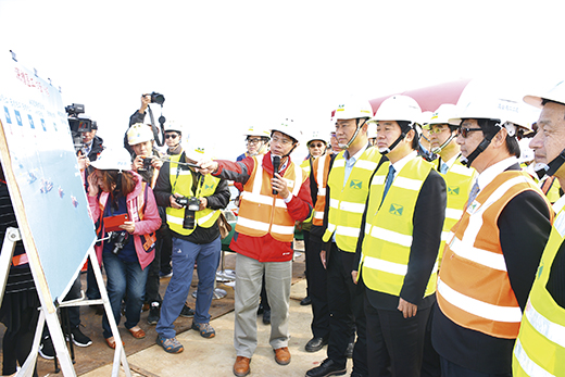 繼前一天視察小三通及動植物檢疫情形後,行政院長賴清德昨(廿一)日視察金門大橋工程,除為施工團隊加油打氣,亦請國發會、交通部與金門縣政府合作,持續支持工作團隊,讓金門大橋能如期如質完工,給烈嶼鄉親一條更安全的道路,及發揮更大的經濟效益。同時,賴清德認為金門大橋對台灣工程具重大意義,亦希望金門大橋成為離岸風力發電的試金石! 行政院長賴清德於昨天上午九時四十分視察金門大橋和聽取簡報,他表示,金門大橋工程截至目前的實際進度達31.89%,相較預定的32.18%,已逐步趕上進度,對於後續工程應該有信心。同時,賴清德亦說,來跟大家加油打氣,說一聲謝謝,不管交通部或金門縣政府、高工局及東丕團隊,一步一步的達到目標,跟大家表達感謝!互相鼓掌!鼓勵一下,真的不簡單! 對於金門大橋工程,賴清德請國發會、交通部持續與金門縣政府合作,支持工作團隊,如期如質完工,把這條大橋建造起來,達到當初興造的目標,除了給烈嶼鄉親一條安全的道路以外,亦能讓大小金門串連,不管是簡報提到的醫療、水電的各種功能,都能一併完成,達到經濟效益更大的發揮。 賴清德特別講到金門大橋的意義,他表示除了對大小金門的意義之外,其實對台灣工程的意義更大。據瞭解,這是台灣極有難度的少有公共工程,其橋長5.4公里,有4.77公里在海上,最深到23公尺,且氣象、海象條件困難,還有要打到23公尺深的地盤是花崗石岩。這工程不僅在台灣少見,在國際上也少見,要完成這個艱鉅工程,非常不容易;未來金門大橋順利完工後,台灣公共工程專業度往前進了一步,況且在台灣混凝土樁直徑達到2.5公尺寬,高達58公尺高,這可讓國際看到台灣的工程進步,真的了不起,也讓台灣工程界引以為榮。 賴清德表示,金門大橋前兩家營造廠商做不成功,東丕營造做得成功,就是有那個決心,並邀請港、韓團隊,且不惜重資,就是要完成大橋興建工程。同時,他指出,台灣要持續進步,也有許多工程在推動,好比淡江大橋已經核定,雖然沒有金門大橋的工程險峻;但是現在馬祖縣長劉增應、立委陳雪生亦三不五時到行政院、立法院爭取興建南北竿大橋,現在可行性評估過了,相關程序完成之後,難度應也不低。如果金門大橋蓋得成功,代表國內業界完成南北竿大橋就有信心。 另,對於風力發電、再生能源發展方面,賴清德表示,再生能源未來的進度是以等比的級數速度在進步,有些學者專家已大膽預測,未來全球主要電力來源逐步往再生能源。現在台灣再生能源剛起步,特別是風力發電,離岸風力發電基樁要一百米長度與高度,也要打到深水區及需要技術,但政府希望工程本土化、產業本土化,金門大橋讓離岸風力發電具有這個本事。 賴清德說,台灣風力發電不止滿足台灣需求而已,亦希望未來風力發電產業,當我們具備推動風力發電的能力後,可組國家隊到外國去推動;金門大橋是風力發電產業的試金石,所以意義非常重大,也是選擇視察金門大橋的原因! 交通部次長祈文中表示,金門大橋位於兩岸小三通航線,工程可說相當艱巨,東丕展現旺盛企圖心,從國外引進廿幾艘工作船及延攬韓國、香港團隊,目前有七個工作面同步展開,深槽區P54墩直徑二點五基樁施作完成,破除業界及國人對工程的疑慮,讓地方鄉親對於大橋施工有足夠信心。 祈文中表示,深槽區約有一百九十三個基樁,目前完成將近九十支,預計下個月完成九十三支,所有基樁明年中就可完成,水面以上工程會展現出來。雖然大橋工程有些微落後,但按照一定節奏,逐步在推進,未來大橋通車之後可縮短往返時程,並附掛民生水、電及瓦斯管路,可保障烈嶼鄉民眾生活更好,以及落實醫療照顧服務。 祈文中說將秉持安全第一、品質至上理念,提升金門大橋的施工速率;今年已克服困難,突破深槽區基樁、鋼箱圍堰基礎等技術難題,明(108)年將持續完成深槽區基礎、墩柱、上構等,期望達成一一○年完工的目標。而且,他亦肯定施工單位的努力及辛勞,未來要做的事還很多,明年更是大橋關鍵工程,希望能如期如質完成,為大小金門發展帶來新的契機。 金門縣副縣長吳成典表示,站在大橋上講話就有一股震撼,有一座橋把大小金門連結起來,是一件創舉、真的了不起的事情;雖然大橋興建過程幾經曲折,看見大橋完成的曙光出來了,感到非常的高興,要感謝的人太多了! 準金門縣長楊鎮浯致詞表示,感謝行政院長賴清德在百忙之中來視察金門大橋工程,在立法院亦多次提到金門大橋命運多舛,從爭取就歷經二十多年,好不容易爭取到,從經費分配分擔比率,地方上也頗多聲音!楊鎮浯指出,為了國家重大工程,各單位能置個人於身外,且基於公益的立場,共同把大橋工進往前推進,表示由衷的感謝! 另,國發會主委陳美伶有感的說,一○五年七月二十日來到金門看大橋,那時候只有工寮,一眼望去,只有一個茫茫的大海,當時停工看起來的東西都生鏽,什麼都沒有。所以,今天來,讓人非非常的感動,看到了具體的東西,甚至有便橋可以走到這個地方,真的要跟交通部及施工團隊深深一鞠躬表示感謝,真的很大的感動,謝謝你們,謝謝! 最後,行政院長賴清德也視察金門大橋工區,他除祝大橋後續工程平平安安、順順利利,並以安全第一為重,並表示當初大橋設計兼顧到觀光,希望大橋興建之後,解決交通問題,亦能帶動觀光發展,大家一起來!