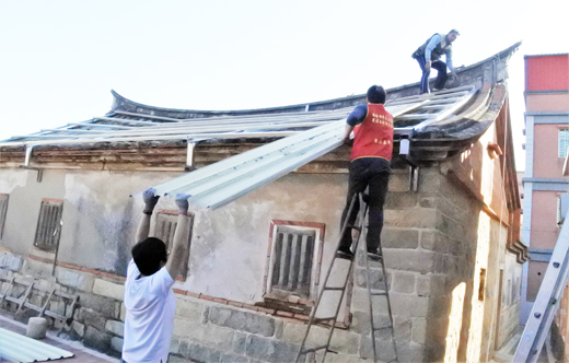 讓最小力量,發揮最大功效。縣議員同時也是金門縣青年志工協會前理事長李應文,經華山基金會、金門縣榮民服務處轉介,西園有位88歲黃姓長者住家屋頂坍塌急需修護,但政府資源又無法應急,他立即動員募款也獲得響應,現已展開施作,連日來志工義務到場協助搭建鐵皮屋頂,也讓民眾十分感動。 李應文議員表示,青年志工服務協會成立宗旨在讓年輕人貢獻所學,並且把資源留在金門放在有需要的人身上,此次不是青年志工們首次為民眾修房子,累計已第四、五例。西園黃姓民眾這個服務案是透過華山基金會和金門榮服處轉介;平常志工以及個人在服務過程中也會接到民眾反映。如同此個案,在政府相關資源無法立即啟動時,相關社團又無能為力時,如民眾住處屋頂已破損急需搶修等,即會立刻啟動協會展開募款和號召志工協助,大家出錢出力,並且經過會勘,取得屋主同意後,展開修護。 昨日下午,志工到場協助民眾於古厝屋頂加強樑柱支撐、屋頂搭建鐵皮保護,避免坍塌更嚴重及遇雨漏水。金門縣榮民服務處、華山基金會志工以及縣議員李應文等皆到場關心長者及施作情形,民眾也連忙表示感謝。李應文指出,所需資金約新台幣4萬元,施作人事費用則為志工義務幫忙,預計近日即可完成。關於幾個個案初期動員協會及志工力量協助應急,後續希望是能協調相關部門思考解決方法,才是根本解決之道。