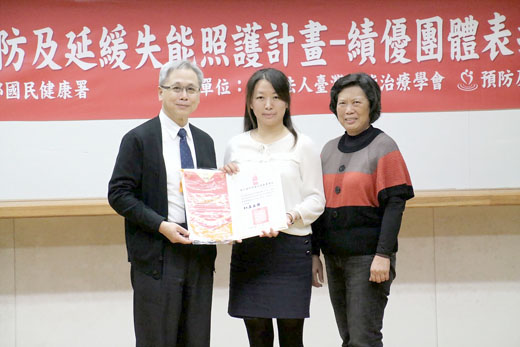 為了預防及延緩長者的失能狀態,讓所有長者都能健康、快樂且活躍地老化,衛生福利部國民健康署辦理107年度「社區預防及延緩失能照護計畫-長者健康管理」計畫評比,吸引逾80個醫療及社區團體參與,金門縣金寧鄉衛生所獲評審肯定,在績優團體獲評選為社區經營獎,日昨赴台接受衛生福利部國民健康署署長王英偉頒獎表揚,期許未來助更多長者促進健康,預防失能,也感謝各單位為了長者的健康所付出之努力。 護理師李淑玫表示,該所深根社區40多年,每年10多場次社區晨曦健檢(6點開始)及每月8場巡迴醫療服務(14個定點),協助2,000多位長者預防及控制慢性疾病,每每告知長者為維繫健康的體能需從日常生活做起,養成規律運動好習慣,欠缺一個完整的好方法指導長者。另配合鄉公所「中秋博狀元」、「九九敬老餐會」及外展式推廣活動時播放活動影集,觸及近3,000多人次,廣受好評且獲得不少村里長及長者的支持,未來希續推動至各社區,帶動更多長者健康生活的環境與氛圍。