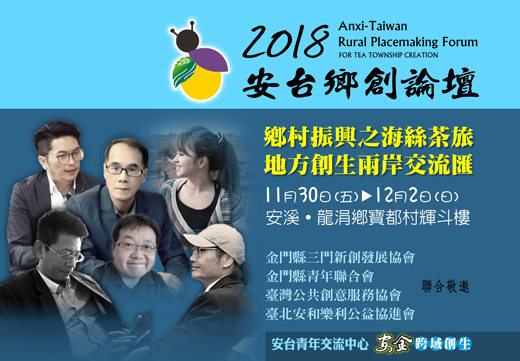由安溪縣旅遊事業局、龍涓鄉政府、安台青年交流中心聯合金門縣三門新創發展協會、金門縣青年聯合會、臺灣公共創意服務協會舉辦之首屆「安台鄉創論壇」,預定11月30日(五)至12月2日(日)在安溪縣龍涓鄉寶都村輝斗樓(百年原生態土樓)登場,預計將有來自台灣、金門大學師生、青年、農業、民宿代表及相關社團,以及安溪縣分管旅遊領導、涉茶旅、鄉創、民宿業者等百餘人與會。 安溪縣為促進兩岸鄉村休閒農業與文化旅遊發展,推動茶香文旅產業經濟持續成長,提升兩岸鄉村振興及地方創生的經驗交流,特邀請台金兩地組織聯合辦理本次論壇。截至目前報名參加之台金成員包括東海大學、逢甲大學、台灣大學、成功大學、南華大學、中國科技大學、金門大學約20餘名師生,以及台金農業、民宿、特產業及青年組織幹部代表約20餘人與會。本次論壇主題為「安台鄉創~打造兩岸跨域創生的新時代」,並以「鄉村振興之海絲茶旅,地方創生兩岸交流匯」為推動目標,主論壇將由逢甲大學建築系李逢時教授、東海大學創意設計暨藝術學院伊志宗教授帶隊開場,安排3位師生發表「地方創生之生活態度與空間營造」等相關議題及推動案例。 除此,論壇還邀請果子創新國際股份有限公司許富凱董事長發表「智慧農業產銷新食代」,茶米店茶葉專賣店藍大誠店主人發表「善待土地與茶產業文創」,王大夫一條根有限公司王建順總經理發表「康養文旅帶動鄉村振興發展」,北山洋玩藝古洋樓民宿李安柏總監發表「民宿經營的深度與溫度」;上、下午兩場引言各由安溪新原鄉孵化器有限公司黃俊仁總經理談「推動安台鄉創的策略與價值」,以及金門縣三門新創發展協會翁朝安理事長談「從金門看兩岸跨域創生的意義」,閉幕式並安排與會嘉賓就「安台兩岸鄉村振興、茶鄉文旅及地方創生之整合發展」與出席代表進行交流對話。 協辦本論壇幕後策劃的金門縣三門新創發展協會理事長翁朝安表示,金門位居台閩之間的絕妙地理位置,無論政治或經商謀略均具有傳動兩岸價值的使命;以金門本島的觀念及資源要推動地方創生,能力雖不是太大問題,但總是受限在地的封閉條件與一致的共識決心。然而,台灣需要大陸的市場,海西也要借重台灣的智識傳承,金門正是扮演帶頭引路、積蓄兩岸人力資源的重要關卡。因此,該會特設立「安金跨域創生專案工坊」作為兩岸新創輔導平台的串接橋樑,期待透過這條「安台鄉創~新海上絲路」推動兩岸有機農業、健康養生、遊憩休閒、綠色生態、環境教育及陸續衍生系列文創產品,融合整體城鄉文旅各面向推展,為兩岸地方創生與鄉村振興發展注入新活力。