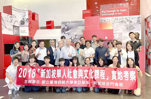 國立臺灣師範大學東亞學系江柏煒教授、陳國偉副教授與林昌平副教授日前帶領20位博士、碩士研究生到新加坡進行實地考察。一行人參觀多所博物館與展覽館、廟宇、學校、文教機構,走訪華人、馬來人與印度人聚集區,遊覽植物園、新加坡河等景點,以探索新加坡多元種族、語言與文化的社會面貌。並於11月1日至2日在金門會館聯合國立臺灣師範大學主辦「新加坡華人社會與文化講座」。 11月1日參訪德華集團,獲得集團主席兼董事經理蔡其生(金門會館主席)的熱情接待,進行講座並發表演講。蔡其生主席分享德華在父親的基礎上,從初期的包裝印刷廠,轉型成為一家跨國企業,業務從生產型企業轉為服務型企業,並增添物流業務。蔡主席也分享擔任中華總商會會長時努力促進團結商家,提升商家的生產與競爭力,加強與國際市場的接軌。總商會也為會員提供多種交流平臺、分享豐富的資源和商機,及建設世界華商網絡。 11月2日的講座會在金門會館舉行,首先,會館總務陳佳模致開幕詞代表金門會館對來自臺灣師範大學東亞學系的師生表示歡迎。他感謝江柏煒教授的策劃,構思了一系列涵蓋新加坡社會歷史、文化變遷、政治經濟等主題的講座,課程讓臺灣的同學們了解新加坡從過去、現在到未來的發展軌跡。陳總務期許講座是深入認識新加坡的一把鑰匙、一扇窗戶,讓更多臺灣優秀的學生投入新加坡的研究,共同為新加坡與臺灣的文化交流貢獻心力。 接著,會館董事秘書方百成主講「新加坡的華人文化節慶」與文教部主任陳成欣主講「新加坡的華文教育產業」、中華總商會陳丁輝博士主講「新加坡中華總商會的歷史與功能」、會館青年團主任許振義博士主講 「新加坡的經濟發展與文化變遷、政治歷程與演變」。 兩天的講座會,主講者與同學們分享各自擅長領域上的知識與經驗。同學們都聚精會神,認真聽講,並紛紛表示受益匪淺。(本文由新加坡金門會館提供)