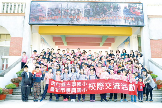 「有朋自遠方來,不亦樂乎」!繼今年五月初,古寧國小師生一行25人至台北市與景興國小、泉源國小城鄉校際交流後,景興國小30名師生進行回訪,抵達古寧國小進行三天生態人文遊學體驗活動,受到古寧國小校長黃芸芸及全校師生熱烈歡迎。 位於台北市文山區的景興國小,以營造校園美感環境著稱,素有「仙跡岩下彩虹學園」的美譽,103年榮獲優質學校「教師教學」、「課程發展」獎項、104年更榮獲教育部教學卓越金質獎殊榮,是一所多元發展績優學校。一進古寧國小校門,師生們已列隊歡迎,並交換禮品,表演節目。一開始,由古寧國小舞蹈社小朋友表演在地舞蹈「慈堤夕照‧鸕鶿之美」,以精湛的舞姿及最優雅的身段展現迎賓的熱情,讓景興師生大為讚賞,再由景興國小音樂社團學生(直笛社、管樂社、古箏社)表演小話劇,以無樂器方式做音樂打擊節奏有劇情的表演,展現學生創意及活力,讓人覺得新奇有趣,全場洋溢著熱情與歡樂聲。 第二天進行古寧特色遊學課程,兩校學生走在池塘間小路,欣賞著樹影水色,鳥翼展翅,對台北市的孩童而言感覺很不一樣。課程安排走訪古寧頭古蹟聚落,如:水尾塔、雙鯉古地、北山風獅爺、雙鯉風情民宿、振威第、泰山石敢當、北山古洋樓等,每一站皆安排古寧國小六年級學生擔任小小解說員,用問答及說故事的方式,導覽自己家鄉的故事,越說越起勁,大家聽得津津有味,意猶未盡。 而最讓景興國小同學們難忘而有趣的生態體驗課程,莫過於下石蚵田擎蚵體驗探索,穿著膠鞋,戴上手套、提起桶子下石蚵田去,在腳丫子接觸石蚵田泥淖的瞬間,驚叫聲連連,蚵農帶領著兩校師生走在水道間,每個人伸平雙手,像走平衡木似的,十分有趣。兩校學生在石蚵田互動、擎蚵、洗蚵,並發現潮間帶生物螃蟹、螺類、招潮蟹、彈塗魚等,還尋到一隻保育類生物│鱟,古寧國小李開地老師為學生現場講解幾億年前就存有的生物「鱟」的成長歷程、公鱟母鱟的區別、稚鱟脫殼特色及環境保護等,上了自然生態寶貴的一課,讓學童收穫滿滿。 校長黃芸芸表示,古寧國小與景興國小兩校師生透過城鄉共學、特色遊學體驗課程,提供城市與偏鄉學生多樣化學習情境,體驗不同文化生態環境,拓展學童視野,締結良好情誼,分享教學成果,是多元而豐碩的學習之旅。