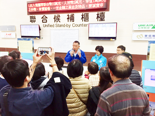 五合一選舉於二十四日圓滿落幕,大批為了此次選舉返鄉投票的民眾於昨日陸續離金返台,昨日下午因現場還有候補人潮,立委楊鎮浯前往了解,並協助爭取加班機投入疏運。 昨日尚義機場擠滿大批返鄉投票民眾陸續離金,因至昨日午後仍在消化現場候補人潮。因此楊鎮浯服務團隊隨即趕往機場了解,並成功爭取立榮航空公司加開晚間八點二十分,飛往台北的班機,好讓鄉親能夠盡快返回工作崗位。 楊鎮浯表示,因為五合一選舉投票,航空公司日昨加開班機,載運民眾返鄉投票。而為因應今日離金旅客需求,他的服務團隊一早就持續向民航局及航空公司聯繫,經清點現場候補鄉親約七十餘人,並成功爭取立榮航空公司加開晚間八點二十分,飛往台北的班機,全力疏運,以期大批返鄉投票民眾能夠順利離金,陸續返回工作崗位。
