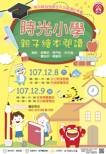 金門縣文化局舉辦「發現美麗金門‧親子說演故事互動學習活動—時光小學親子繪本閱讀」,日期訂於12月8日及12月9日,活動分為上午及下午時段共四梯次,12月8日上午場08:30—11:30文化局演藝廳二樓視聽室;下午場13:30—16:30烈嶼鄉圖書館;12月9日上午場08:30—11:30金寧鄉圖書館;下午場13:30—16:30金沙鎮圖書館。本次活動採取電話報名,報名時間為周二至周日09:30-17:30,每場次限50位名額,額滿為止。報名請電082-323169#506 圖書資訊科,歡迎民眾踴躍報名。 本次活動將邀請台灣知名作家黃惠鈴、莊世瑩、曹益欣、楊麗玲、蔡秀敏等五名講師,從閱讀開始,引導大人小孩在生活中享受閱讀所遇見的美麗金門故事島。五名講師學經歷如下:黃惠鈴,台灣師大圖文研究所畢業,致力為孩子編、讀、寫書,所編的圖書曾獲五座金鼎獎、誠品年度最佳編輯獎,個人曾獲國立編譯館優良漫畫(腳本)首獎、信誼基金會圖畫書獎、耕莘文學獎等。莊世瑩,曾任天下教育基金會「希望閱讀」講師,研揚基金會推廣閱讀講師,教育部「悅讀101」推廣講師,環球技術大學兼任講師,曾擔任《聯合報》年度童書、信誼幼兒文學獎、Openbook閱讀誌年度童書等獎項評審。曹益欣,目前從事插畫、繪本和紙芝居的創作。楊麗玲,插畫工作者。喜歡旅行、喜歡走山路、喜歡寫寫畫畫,著有《放假了》、《會呼吸的麵包與麵包師傅》。蔡秀敏,知名兒童繪本圖畫作家、兒童繪本文字作家、藥劑師和大學講師,繪本作品得過2010第三屆世紀國際美展特優獎和信誼基金會第十五屆兒童文學獎。 「發現美麗金門‧親子說演故事互動學習活動—時光小學親子繪本閱讀」由黃惠鈴講師,引導讀者認識書原來都跟生活息息相關,閱讀可以成為親子互動重要的良方;莊世瑩講師讓親子共讀童年書,從閱讀中分享彼此的人生故事;曹益欣講師用遊戲的方式,認識爸爸媽媽、阿公阿嬤小時候的遊戲和玩具;楊麗玲講師透過繪本描繪的三代人價值觀的不同,想想自己幸福的面貌;蔡秀敏講師要用健康的繪本帶領親子認識生活中的健保之道。此次講座以親子共讀為題,不只著眼大腦閱讀神經的整合能力,更是親子互動的心理連結。 文化局誠摯邀請親子多到圖書館借書閱讀,陪伴孩子參與及成長,讓孩子們跟著書中的主角們經歷不同的生活與際遇,就像與孩子一起旅行,讓閱讀帶來美好時光。