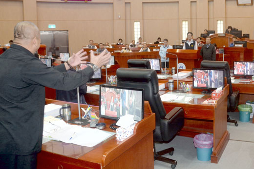 金門縣議會第六屆第八次定期會議,昨(二十一)日繼續進行相關議程,原排定為聯席審查,審議一○八年度預算案,因各小組針對所屬業務單位預算尚未審議完畢,故由主席宣布會議延期。 第八次定期會議於昨日上午九時三十分起,在議會議事廳舉行,由歐陽儀雄擔任主席主持會議,縣府秘書長率縣府一、二級局處首長出席與會。原訂進行聯席審查,審議金門縣一○八年度總預算暨附屬單位預算案(含各審查會報告分組審查情形)、審議財團法人金門縣社教文化活動基金會一○八年度預算案等議程。 經各小組召集人報告,各組尚有單位預算還未審議完畢,因此主席歐陽儀雄宣布延會再議。 而議員許建中針對近日網路錄音帶表示,鎮長有出席多一千萬這類的話,縣府像是分贓場所,人事、主計、政風根本是不被放在眼裡,直言縣長不尊重官員了,議員還需要尊重官員嗎。許建中還說,整天利用報紙在澄清,有問題就該提告就好;另外像是土地問題也一直登報澄清,許建中說其他縣長是沒有私心,小面積的土地標售,是給有需要的民眾買來蓋,而非給財團的。報紙應該要有尊嚴,報導要中立一些才是。