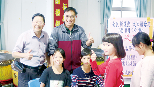 為推動母語扎根,保存本土語文精髓,加強學生對本土語言的學習,古城國小日昨舉辦一場「全民新運動—大家講母語」闖關活動,透過闖關讓孩子在遊戲中檢視平日所學有關母語聽、說、讀等能力。校長楊成業勉勵學子,因應國際化和地球村時代,除了外語能力之外,對於本土語言的學習亦不能偏廢。 古城國小「全民新運動—大家講母語」學生闖關活動,日昨下午假該校活動中心舉辦,全校一至六年級一百二十多位學生齊聚一堂,透過俗諺及童謠、動物大觀園、水果樂園、唸句型遊戲、朗讀課文等方式,設計五個關卡,讓小朋友依照就讀年級選擇適合的關卡並完成任務,也用以檢視學子平日課堂中母語學習的成果。 在闖關活動進行中,適逢縣府教育處處長李文良蒞校訪視,楊校長特陪同李處長撥冗親臨該校活動中心,為參加母語闖關活動的學生加油打氣,祝福學生們大家都能闖關成功,順利圓滿完成,通通都能得獎。 古城國小表示,此次母語闖關活動共計一百二十六人參加,活動成果全數過關率逾八成,對於新移民子女數佔全校學生數近五成而言,整體母語教學成果相當不錯。對於完成闖關班級的學生,學校也頒發本土語言通關證明書及小獎品作為鼓勵,校長楊成業並於活動中心舞台跟學生們合影留念。 校長楊成業表示,金門人的母語主要是閩南語。學子處在地球村的現代,除了因應國際化及強化競爭力的需要,需要學習並具備良好的外語能力之外,本土語言的學習與強化以及展示在地的優點與特色,亦相當的重要,不可偏廢。 楊校長指出,該校特別設計闖關評量的方式,主要是期望讓學生在遊戲中學習,以增進及提高學生學習閩南語的興趣,同時也檢視學生平日學習閩南語的成果,並藉此增強學生學習閩南語的自信心,進而能培養愛護鄉土的情懷。