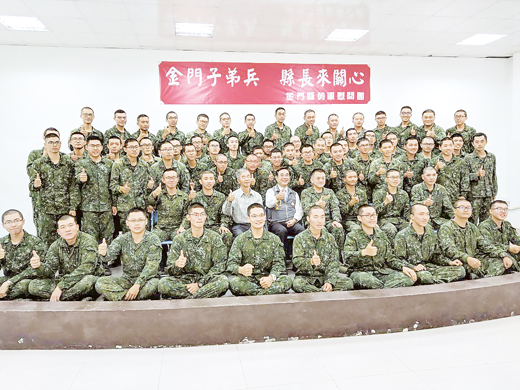 副縣長吳成典昨(29)日中午代表縣長陳福海,與五鄉鎮長共同赴金防部幹訓班,慰問197位入伍1個多月的軍事訓練役男,帶來雞排、烤鴨等為這些金門子弟兵加菜,吳成典與五鄉鎮長也和役男們同桌共進午餐,了解役男們在軍中的生活起居是否有需要協助之處。 吳成典表示,役男們受訓這1個多月的訓練,大家辛苦了,看到大家個個精神抖擻,身體健壯,入營1個多月的訓練想必已經帶給大家很大的收穫。兵役制度變革以後,83年次以後的役男只要接受4個月的軍事訓練,即可完成國民應盡之義務,役期與過往的1年,甚至2、3年相比,已經減少了非常多,希望各位役男服從部隊裡各位長官的命令,盡自己所能達成各項要求,磨鍊自己,使自己有所成長。 吳成典指出,當兵對於男生來講,既是義務,也算是一種承擔,畢竟部隊裡的生活,不可能像學校、家裡那樣自由,一個口令,一個動作,服從命令是當兵的最高準則。因此各位役男務必要轉換心境,去適應軍中生活,好好運用服役的這段期間,鍛鍊身體,沉澱自己,充實體力及心靈。如有不適應之處要立即向訓練長官反映,請求協助;也希望金防部幹訓班的各位幹部,能密切注意役男身心狀況,多加關心,讓役男可以平平安安地受完訓練,迎向人生下一個階段。 吳成典勉勵役男,4個月的時間,大家要拋開以前的壞習慣,恢復規律的生活,相信對於人生一定有很大的轉變。吳成典也談到縣府對於金門未來基礎建設、水電設施的規劃,他強調,要幫各位役男們打造一個良好的基礎環境,讓大家退伍後能夠留在金門工作,陪伴家中長輩。 陸軍常備兵軍事訓練役第82梯於今(107)年9月19日入伍共197位,軍事訓練役只需服役4個月即可退伍。