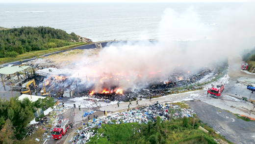 新塘垃圾場大火!位於金湖鎮的新塘垃圾場,昨(29)日下午3點不明原因發生大火,燃燒面積4000平方公尺、約半個足球場大,燒掉約500噸原本要運往台灣燃燒的垃圾。消防局派出12車共50多名警義消救火,以大量泡沫灌救,因現場垃圾量過大、深層燃燒,至晚間仍在灌救當中。 位於金湖鎮的新塘垃圾場,昨日下午約14:57傳出火災,燃燒區域是準備運往台灣燃燒的垃圾,主要是紙類和廢棄家電,不明原因冒出火苗,火勢一發不可收拾,冒出濃濃黑煙,遠在金湖鎮市區都可看見黑煙直竄天際,現場瀰漫濃濃燃燒惡臭。所幸當時風向往南方吹,將黑煙吹往海面,不至於嚴重影響金門地區空氣品質。且燃燒區域為獨立隔離,一邊是海、一邊是道路,因此火勢較不容易無限蔓延。 據了解,本次燃燒的垃圾囤積區大約1.2公頃,囤積約1551噸的垃圾,大約燒掉三分之一,也就是4000平方公尺,大約半個足球場大,燒掉約500噸原本要運往台灣燃燒的垃圾。 金湖鎮長蔡西湖表示,新塘垃圾場主要是堆積金湖鎮產生的垃圾,以及金門所有打包好準備要運送到台灣燃燒的垃圾包,這次燃燒的區域就是後者堆積的區域。 消防局派遣多車多人前往灌救,起初以灑水滅火,一度因火勢太大沒有作用,隨後改以泡沫滅火。消防局副局長王世祿表示,約14:59接獲民眾報案後,陸續派出共12車50多人,機場消防班出動大型消防車支援,軍方支援45人2車,水頭港務消防隊出動化學車1台2人,怪手7台。因現場風勢大,起火後迅速延燒至垃圾掩埋面,現場垃圾量過大、深層燃燒,消防局以大量泡沫灌救,至晚間仍在灌救當中。 去(106)年7月,受到垃圾爐渣運回問題喬不攏的影響,金門地區垃圾一度停止轉運台灣燃燒,堆積上千噸垃圾在新塘垃圾場,產生沼氣,並在一周內發生兩次自燃火警,當時燒出金門的垃圾問題並引起「是否自蓋焚化爐」的議題討論。 環保局廢棄物管理科科長黃杏玲表示,金門自去(106)年9月開始推行垃圾分類減量,在這之前,金門一個禮拜大約產生255噸的垃圾,減量後目前大約一個禮拜產生120噸垃圾,其中每個禮拜約有90噸垃圾可運到台灣焚燒,30噸垃圾是堆積在金門的。黃杏玲提到,今年8月南部水災,當時焚化爐為了消化水災廢棄物,先減少焚燒金門的垃圾,而接下來遇上焚化爐歲修,恐怕也會減少幫金門燃燒的垃圾量。