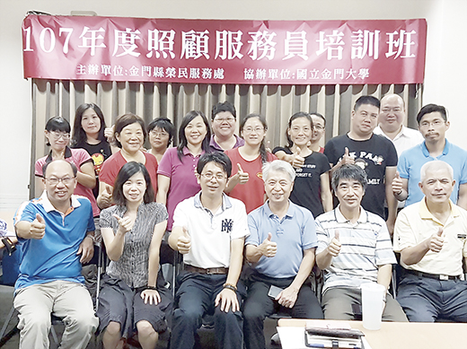 金門縣榮服處委託金門大學辦理照顧服務人員培訓班,日前在金門大學開訓典禮,希望藉由108小時的專業訓練,以協助參訓榮民眷及第二類退除役官兵培養專長,在訓後投入職場,成為長期照顧體系的生力軍。 金門榮服處表示,此次照顧服務人員培訓班,是由金門縣榮服處處長呂媽定與金門大學進修推廣部主任余泰魁共同主持。呂媽定表示,該處為因應政府推動長照2.0政策及金門當地人口老化嚴重,需要投入大量的照顧服務人力做好準備,乃委託金門大學辦理照顧服務人員培訓班,希望藉由專業的訓練,提升榮民眷及第二類退除役官兵職場競爭力。並再次宣導自今年7月1日起公告實施「促進退除役官兵穩定就業方案」相關激勵津貼,希望各位學員努力爭取。 金門大學進修推廣部主任余泰魁指出,自長照2.0計畫推動後,服務照顧員就業需求人力倍增,且薪資待遇也較以往提高許多,所以近年來一直是進修職訓的大熱門,且該校擁有多年培訓經驗,相信不負榮服處所託,輔導學員習得專技,在職場上開拓自己的一片天。