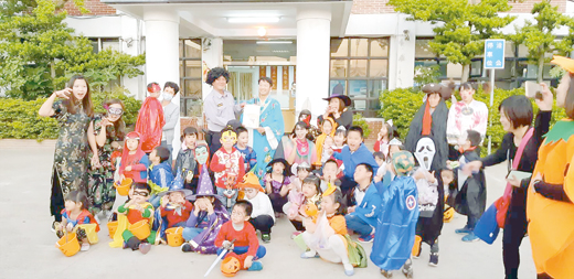 為提升孩童「多元文化」認識並體驗異國節日風俗,培養對不同文化的尊重,述美國小幼兒園親師生29日傍晚踩街去,師生妝點成不同的主題人物,校長劉界宏配合演出頂著「爆炸頭」遊街,師生所到之處成為焦點,學生大聲喊出「萬聖節快樂」,並以恐佈的表情及變聲的音調來表示感謝。學子興高采烈參與,夜幕低垂,也為活動增添熱鬧又不一樣的氛圍。 Trick or Treat!述美幼兒園辦理萬聖節活動,在幼兒園主任吳馨寧、老師陳高馨、莊蕙菁、游宛甄等在精心規畫下,於29日傍晚辦理踩街活動,每位孩子興致勃勃在放學後,由家長陪伴下妝扮成各種角色人物,搭乘公車到金沙鎮公所、金沙分駐所、街上特產店及超商各搗蛋去,鍛鍊孩子的膽量和辨別能力,也透過活動在造型裝扮中激發創意,帶孩童了解社區及認識商店,促進鄉土關懷,同時也感受到異國節慶氣氛。 述美國小校長劉界宏也頂著「爆炸頭」並裝扮成古人,帶領親師生遊街。學校也特別為各商店和單位主人準備道具-爆炸頭飾,讓大家一起參與體驗一下。