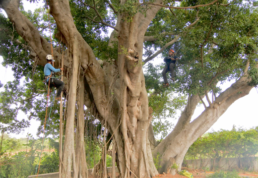林務所委託攀樹師修剪列管老樹