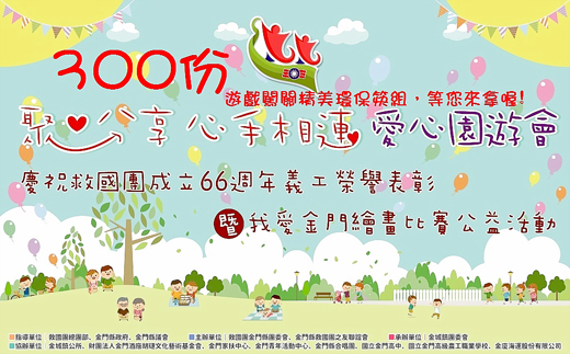 救國團慶祝66週年團慶,將於10月27日上午9時至下午15時,假金門青年活動中心(環島北路一段一號)舉辦,歡迎一同感受青春活力,一同做公益! 救國團成立邁入66週年,已成為海內外各界公認是最具代表性的青年服務團體;未來救國團仍將秉持「公益性、教育性、服務性、健康性」四大志業,並以成為青年服務工作最具有影響力的NPO組織之一為願景。今年救國團以「我們為青年服務,青年為國家服務」為理念繼續深耕地方,福祉社會;金門縣團委會今年更積極整合在地資源,與政府、民間社團敦親睦鄰成為公益社團夥伴,共創三贏。 66週年團慶精彩活動內容包含聚分享~愛心園遊會、義工榮譽表彰、兒童繪畫比賽、親子闖關遊戲、學校社團歌舞表演。其中一大焦點是義工榮譽表彰,表揚金門縣優秀的義工,激勵士氣、凝聚共識,感謝他們全心投入、付出奉獻,讓夥伴的努力獲得肯定。當日並辦理「聚分享~愛心園遊會」,除了有稅務局、衛生局、警察局少年隊、家扶中心宣導及美食、飲料攤位外,只要通過宣導及遊戲闖關,現場提供300份精美環保筷組兌換。 還有得金牌的棠風舞蹈團開場舞、金門縣合唱團~救國團懷舊組曲演唱、金門農工熱舞社熱力舞蹈等…精彩表演,透過表演方式,達到相互交流並增進情誼,凝聚組織向心力,讓大家切磋觀摩,內容非常多元豐富。 救國團金門縣團委會主任委員洪麗萍表示,在慶祝團慶的同時,亦關懷弱勢族群,彰顯公益服務的精神,特別邀請「金門家扶中心、福田家園、晨光教養家園」及公部門宣導的夥伴一同參與,使其感受救國團熱情洋溢的氛圍;並提供盲人按摩師周育安先生攤位讓更多民眾免費體驗,認識「用心代替眼,用手傳遞愛」。