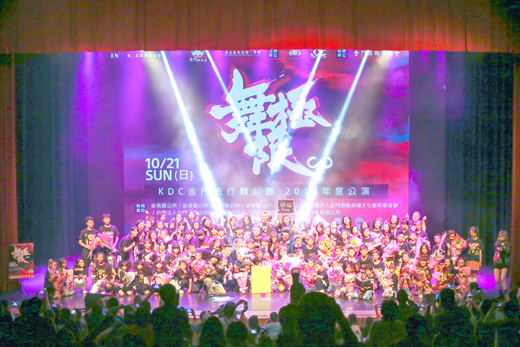 KDC金門流行舞蹈團年度公演「舞極限」日前於金門文化局動感開演,現場吸引許多鄉親到場欣賞,台上熱情開舞,台下觀眾則是報以如雷掌聲。 這場由福建省政府、金門縣政府、國立臺南生活美學館指導,金門縣文化局主辦的KDC年度公演,已經舉辦多屆,每年的公演都叫好叫座。由於前一年沒有舉辦公演,讓很多鄉親更期待這次的演出活動,在還沒開演前文化局外早已大排長龍。 KDC舞團為了日前的公演,準備了十八個表演節目及十七支精彩作品;而今年特別邀請到廈門的大兔巢藝術團抵金交流演出,雖然年紀都只有國小但舞技驚豔全場目光。而參與演出的小朋友表示,第一次金門來演出有這麼盛大的場面真的很興奮很開心,希望下次還能有機會參與KDC年度盛會。 除了舞者們準備的舞碼之外,擔任活動主持人的陳衍利,也為今年的公演首次嚐試以「舞蹈」作為開場,由團長李依文(Eva)特別為其量身編創了性感熱情的開場舞,驚豔四座。而陳衍利不僅提前找老師集訓,更在開演前努力練習,果然台下觀眾的反應非常熱情,掌聲及尖叫聲不斷。 李依文說,金門流行舞蹈團自二○一一年成立至今已邁入第七年,主要致力於推廣街舞及流行舞蹈文化,發掘及培養專業舞蹈表演藝術人才。目前KDC團員從四歲開始到社會人士都有,年齡層涵蓋範圍很廣,舉辦年度公演除了讓舞團的大小舞者有很棒的舞台可以將自己平時所學大方展現之外,更透過演出培養建立學生的自信與態度。