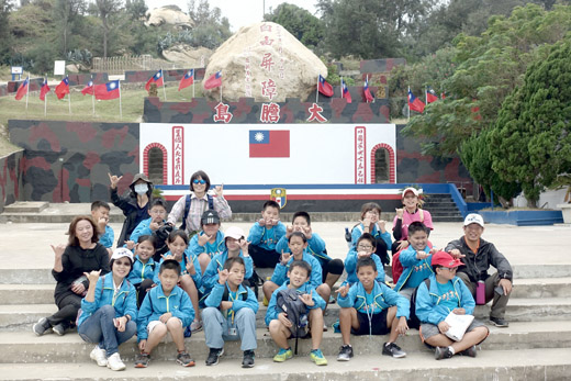 趕在大膽島本月31日截止試營運之前,金門縣金寧中小學國小部17位六年級學童辦理走讀庄頭---大膽島采風校外學習活動,幸運的成為首批登上大膽島「采風學習」的小學生。讓學童留下美好記憶,並達到走讀學習的效果。 為了讓學童親近聞名世界,有「前線中的前線」之稱的大膽島,同時感受尚保留戰地神秘色彩、曾經歷激烈戰役「大膽挑大擔」的大膽島,金寧中小學校長陳雅蘭帶領國小部行政團隊特別籌畫此次的「走讀庄頭---大膽島采風」校外學習行程。 24日上午8時20分,陳雅蘭校長與教務主任鄭堤允、學務主任陳榮權等7位教師,帶領17位國小部六年級學童從學校出發,先搭乘交通船至烈嶼,再從烈嶼九宮碼頭搭觀光船啟程駛往大膽島,師生對首次踏上聞名已久的大膽島都雀躍萬分興奮不已。 在島上,他們由專業導覽員引領解說,走遊了南山、北山的大膽勒石、生明路、生明廳、神雞墓、北安寺、心戰牆、神泉井、神泉茶坊等景點,在「三民主義統一中國」巨型心戰牆前,小朋友透過大型望眼鏡,清楚的看見對岸人車走動,都感到驚奇萬分。 鄭堤允主任表示,此次大膽島采風學習,主要讓學童感受戰地氛圍,了解戰爭可怕及和平之可貴;過程中並精心設計學習單,讓學童註記及畫出景色最美、印象最深刻的景點,以及書寫登島心得,希望學童留下美好記憶外,並達到走讀學習的效果。 下午2點半,師生從大膽島搭船返回烈嶼九宮碼頭,順利結束登上大膽島「采風學習」的豐富之旅。