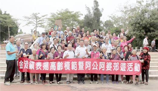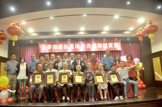 九九重陽節前夕,金寧鄉公所舉辦107年重陽節進香暨表揚活動,副縣長吳成典、金寧鄉長陳成勇、鄉代會主席陳成泉共同頒獎表揚高齡模範、尊老楷模,並向所有長者賀節。陳成勇說,金門長者經歷艱辛的歲月生活,縣府持續在長者區塊的照顧服務,讓辛苦一輩子的長輩們生活過得快樂,安享晚年的生活,落實縣府照顧長者的施政政策。 金寧鄉公所慶祝重陽節,安排四百多位長者進香,先後抵雙鯉古地關帝廟、西浦頭李光前廟、新頭伍德宮、料羅順濟宮等廟宇進香,中午假盈春閣舉行重陽節表揚模範大會暨聯誼餐會。 副縣長吳成典、縣長夫人許梨羨也專程到場向金寧鄉長者賀節,受到鄉長陳成勇、鄉代會主席陳成泉、副主席李開陣、鄉代表、村長和長者的歡迎。 副縣長吳成典、縣長夫人許梨羨和陳成勇、陳成泉共同頒獎表揚高齡模範六人,分別是古寧村李允坐、安美村林水土、湖埔村蔡世聚、榜林村林允成、盤山村翁李銹娥、后盤村蔡世榮。表揚六位尊老楷模,分別是古寧村李應勝、安美村楊晉頡、湖埔村陳清雄、榜林村林自志、盤山村翁文敏、后盤村王先協等。 吳成典肯定高齡模範一生照顧家庭,熱心地方公共事務,深獲地方上的好評。也稱讚尊老楷模發揮老吾老以及人之老的精神,為同儕樹立學習的榜樣。並指出,金門長者經歷過古寧頭戰役、八二三砲戰的烽火歲月,為守護金門這塊土地,犧牲奉獻,過著艱辛的生活,如今,縣府有能力照顧長者的生活,不僅要做好老人服務的工作,也要照顧長者的晚年生活和福利,在縣議會的支持下,六十五歲以上老人也加發一千元,希望長者生活過得快樂。