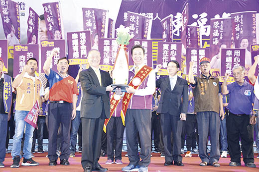 現任金門縣長陳福海昨(十)日雙十節舉辦競選服務處成立大會,支持鄉親和民眾擠爆金門縣立體育館;新黨主席郁慕明、致公黨主席陳柏光跨海站台,高喊「凍蒜」,拉抬陳福海競選連任氣勢。陳福海講述縣長及立委任內政績,以及未來「金門十大建設」競選政見,均將於兩年內發包,以政見打動鄉親,展現他競選連任的決心,繼續為金門鄉親服務及為金門打拚,讓金門建設發展十全十美與建構金廈生活共同圈的美好願景。 陳福海競選服務處於昨晚七時起,假金門縣體育館舉行,來自全縣各鄉鎮與台灣的支持鄉親和民眾,把整個體育館擠爆;陳福海在公揹婆及競選旗隊引導,他與夫人許梨羡從成立大會中央進場,受到兩旁鄉親民眾歡迎,陳福海熱情揮手及與大家握手致意,感謝大家到場力挺與支持,氣氛十分的熱絡! 在陳福海競選服務處成立大會前,有國樂及社區婦女才藝表演,現場也高舉陳福海競選連任旗幟一波波的高喊「凍蒜」,聲音響徹雲霄;陳福海與跨海站台的郁慕明、陳柏光、親民黨金門黨部主委楊耀芸及穎川堂陳氏宗親會理事長陳聰泉等人,一起高舉右手喊「凍蒜」,為成立大會炒熱氣氛。 親民黨金門黨部主委楊耀芸、穎川堂陳氏宗親會理事長陳聰泉分別為陳福海及夫人披掛競選紅綵帶;楊耀芸呼籲全縣三十六村里全力支持陳福海順利連任金門縣第七屆縣長成功,繼續為金門縣政建設發展打拚和為鄉親謀福利。 新黨主席郁慕明送好彩頭給陳福海,象徵競選連任成功的好兆頭與吉祥。郁慕明表示,他是欽佩金門和關心金門,金門保衛後方的台灣免於傷害,並向金門鄉親鞠躬道謝。同時,他說陳福海不分藍綠,心中只有鄉親,四年有具體的施政成績,為人民服務及為金門謀福利。郁慕明說過去金門是戰地,期望在陳福海連任帶領之下,建設金門成為彩色的金門! 致公黨主席陳柏光致贈蒜頭,祝陳福海連任凍蒜成功,也肯定陳福海任內的政績及施政魄力,相信陳福海未來會有更大的格局,民生經濟建設一定會更發展,成為更幸福的金門島嶼。 陳福海在競選服務處成立大會中,他特別感謝所有鄉親,並說「一件事情,同樣做三十年,且始終如一不忘初心,就是希望能為我們的鄉親來服務,廿六歲到今天五十六歲,期間我要感謝一路走來,陪伴福海牽成支持福海的人,這三十年我很想為金門做一點事,我想點點滴滴始終如一;認識福海的人應該很清楚,我想我沒忘記初心,鄉親優先是我一直念念的,我就想幫鄉親做點事,所以在這段期間我特別要感謝我們所有團隊。 陳福海特別感謝「所有的鄉親給三十年福海的栽培,這個能量告訴福海要做什麼,金門最缺什麼福海就做什麼,鄉親需要什麼福海就做什麼,對的事該做的福海一定來做,福海來完成。我想環島北路拓寬歷經三任縣長,感謝縣府團隊協助我們一起完成,我們做到了!這就是我們要的道路!」 陳福海表示,「各位鄉親我們很缺水,繼續下去,最好的地下水沒有了,高粱酒也沒有了!當時接水時 一噸水十三點五塊,福海重新啟動談判供水契約,省了將近15億的預算,三十年省了將近十三億。我們金門也很缺電,四任總統沒感受到,福海感受到了,接下來台電新增的兩部機組不久就能投入供電了。另外這四年福海做了很多道路整建的工作, 特別跟鄉親報告,我們除了鄉鎮計畫道路,也完成了環島南北西路部分路段的拓寬。不只水電還有教育,這四年投資逾一百多億,希望金門教育可以翻轉。」 陳福海說,「各位敬愛的長輩,福海保證對各位的關懷絕對不縮水,不管是55歲領三千、65歲領六千之後的福利也還會持續,因為有金酒持續創造業績我有信心。 」 陳福海指出,「金門醫療也很辛苦,我在任立委時,手機全開機就是為了鄉親為了醫療,福海上任後協助金門醫院先後成立心導管室、洗腎中心、啟用特殊牙科、先進超音波儀器等等,之後也會還持續推金門醫療升級。」 陳福海表示,「福海剛上任時,大陸來金門旅遊人口33萬,現在成長一倍到70萬,金門兩岸的接軌友善可以讓旅遊市場加快腳步,所以我們的建設都是未來的發展。因為有了這些付出,還有鄉親的支持,我們在天下雜誌全國縣市長票選也努力進步到全國第五名,特別感謝鄉親和縣府團隊。」 陳福海表示,「最近讓福海很感慨,因為選舉,最近對手有一些抹黑作法讓人很失望,我特別要來還原事實真相,有人說福海在賣土地。但是數據出來做過區段徵收的三任縣長,李炷烽招標了十八筆土地,李沃士招標了廿七筆土地,福海透過區段徵收平均地權規定處理了一筆,但是對手竟然惡意抹黑福海賣祖產,真的很過分。」 另外,陳福海還用看板說,「金酒到大陸是偷偷去,這個跟鄉親報告,我們從來沒有違法亂紀,這個案子福海主動移請檢調調查,今年二月份金門地檢署也還了我們清白,全案偵結不起訴。當初過程是金酒接到議會提案後才來討論這個事情,縣府過程中特別要求金酒要注意適法性、財務面與可行性,完全沒有像對手說的縣府要求金酒做違法的事情,這要特別跟鄉親朋友講清楚說明白。」 陳福海表示,「大家應該可以體會到福海的認真與用心,光這一年時間我跟中央要了多少錢,同樣都是離島,金門要了四十二億,澎湖十多億,馬祖不到十億元。今天很多年紀很大的長輩,從很遠的金沙山外來支持福海,福海一定會更努力,更勇敢更認真地把所有金門要做的事情都做好。 最後,陳福海表示,「我要提到福海未來四年