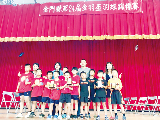 金門縣第24屆「金羽盃」羽球錦標賽一連兩天在金城國中體育館揮拍競技後,寶安羽球隊稱霸社會男子團體青年組,澎湖羽球委員會在社會男子團體壯年組封王。教育處長李文良頒獎表揚各組績優隊伍,並歡迎台灣選手組隊來金門交流比賽,提昇地區運動技術,帶動全民運動風氣,並以運動帶動地區觀光旅遊。 由金門縣立體育場主辦、金門體育會羽球運動委員會承辦、在金城國中體育館展開賽程,共有40支隊伍、220位選手參賽,共進行100多場次的對戰,週六社會組、周日進行國中男子團體組、國中女子團體組、國小五、六年級男子團體組、國小五、六年級女子團體組、國小三、四年級男子團體組、國小三、四年級女子組等十組的比賽,於當天下午四時許揭曉結果,由金門縣體育會羽球運動委員會主委謝世祥等頒獎表揚績優團隊。 金門縣第二十四屆「金羽盃」羽球錦標賽,社會青年、壯年團體、國中小男、女子團體組獲獎名單如下: 社會團體壯年組:第一名澎湖縣羽球委員會、第二名金沙羽球隊、第三名寶安羽球隊、第三名台南市羽球委員會。 社會團體青年組:第一名寶安羽球隊、第二名澎湖縣羽球委員會、第三名皇家酒廠勇士隊、第三名金一體育用品。 國中男子團體組:第一名金城國中、第二名金寧國中A隊、第三名金寧國中B隊第三名金沙國中A隊。 國中女子團體組:第一名金寧國中A隊、第二名金湖國中B隊、第三名金城國中、第三名金沙國中B隊。 國小男子高年級團體組:第一名開瑄國小、第二名中正國小。 國小男子中年級團體組:第一名開瑄國小A隊、第二名開瑄國小B隊、第三名中正國小、第三名金沙國小。 國小女子團體組:第一名開瑄國小B隊、第二名中正國小。