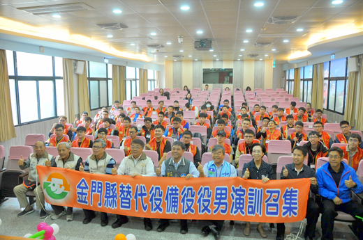 金門縣「107年替代役備役役男演訓召集」,昨日在金門縣政府多媒體簡報室舉行,本次金門縣召集了公共行政役替代役備役役男四十人,並代訓水利維護役十九人,總計五十九人共同參訓。 內政部役政署主任秘書李昊陞強調,替代役備役役男係按照專長納入編組接受演訓召集,目的在加強備役役男面對全球極端氣候時,能多一點防災知識和技能,遇到災害時能協助政府或社會投入救災助人。 金門縣政府參議甯國平也以這次替代役備役役男演訓召集,五十九位備役役男均出席參加,也代表縣長向大家致意。並期面對全球極端氣候,大家能接受防災救災演練,以能更深入了解災害發生時,多一點應變知識,當有需要時就能協助政府投入救災工作。 這項替代役備役役男演訓召集,昨日上午九時三十分起舉行,包括經濟部水利署副工程司林森興、金門縣政府民政處副處長許慧婷、編管中心秘書沈少明、幹事陳再利,以及鄉鎮公所役政幹部與會。 縣府民政處指出,本次金門縣召集了公共行政役替代役備役役男四十人,並代訓水利維護役十九人,總計五十九人共同參訓。演訓召集並以退役八年內的備役役男為召集對象,藉由每年實施的演訓召集,讓備役役男熟稔及精進個人災害防救技能,透過實際演練,以強化備役役男於災害發生時的危機意識及應變能力,讓人民的生命財產減至最低。