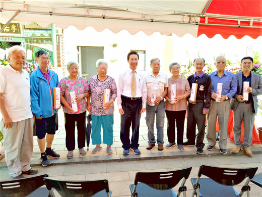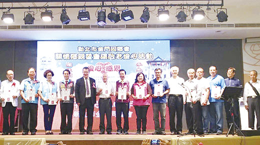 縣長陳福海昨率副縣長吳成典、民政處長陳永明、社會處長陳世保、財政處長王漢文、體育場場長黃克標等人,出席新北市金門同鄉會重陽敬老活動,除了表達對家鄉長者的敬意,肯定鄉親長輩勤勞打拚、勤儉傳家之固有美德,也藉著與旅台同鄉的團聚,向大家宣導縣政理念,同時俯聽民意,凝聚鄉情。 這場由新北市金門同鄉會主辦,新北市政府、福建省政府、金門縣政府指導,新北市議員陳錦錠服務處協辦的「關懷鄉親暨重陽敬老愛心活動」,昨在宸上景麗婚宴會館(新北市中和區中山路2段311號)舉行。 大會由理事長陳復寶主持,現場嘉賓雲集,包括前金門縣長張人俊、金門縣議員陳玉珍、新北市法制局長黃怡騰、新北市議員連斐璠、陳錦錠、中和區長柯慶呂、福建省政府參議陳永富、導演唐振瑜及旅台各地金門同鄉會理事長、理監事及會員鄉親近500人參與盛會,鄉親鄉情匯聚一堂,會場溫馨與歡欣交織,其樂融融。 縣長陳福海應邀致詞時,特別感謝同鄉會長期以來對鄉親的服務,也期許同鄉會能擴大服務鄉親的層面。陳福海感性的說,同鄉會是縣府力量的延伸,新北市金門同鄉會長期以來,不僅團結旅台金門鄉親、促進鄉誼,也以發揚故鄉文化,造福鄉親為宗旨;而在辦理急難救助、奉獻社會、表揚傑出鄉親及輔導創業就業等各方面更多所著力,縣府將與同鄉會密切合作,共同關心照顧島內島外鄉親的福祉與權益,期望大家攜手努力,讓家鄉未來更美好。 本次活動除頒發獎學金及頒發第13屆理監事當選證書、顧問證書,也藉著系列文藝活動熱鬧舉辦重陽敬老表揚。包括表彰對恆久婚姻鶼鰈情深之敬意,會員或會員雙親結婚滿50周年以上,夫妻均健在,獲頒金鑽婚紀念牌祝賀,獲50年「金婚」獎的有:呂英美及呂莊麗賢伉儷、顏維能及王夢琪賢伉儷;60年「鑽婚」獎的有:翁福順及徐能羨賢伉儷、許家勇及許歐全賢伉儷、李增獅及翁明麗賢伉儷。 而會員家族符合四代同堂以上,家庭和樂者,也在會中獲頒「四代同堂」全家福獎,今年獲表揚的有陳李賢家族。 另旅台鄉親對家鄉、社會服務有具體貢獻,或對奉養雙親或照顧弱勢子女有特殊貢獻者,也獲頒奉獻獎鼓勵;各行各業有傑出成就、事業經營有成且足為表率之旅台金門鄉親,則獲頒「金門之光」獎,今年獲「奉獻獎」的分別是:連斐璠、余巧慧。榮獲「金門之光」獎的則有:李增德、莊振輝。
