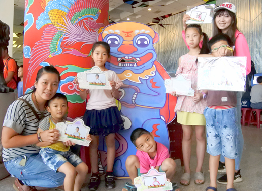 陳麗妤/圖文 金沙鎮2018高粱老街風獅爺文化季昨熱鬧登場,金沙鎮公所設計系列活動免費供鄉親前往體驗,首先登場的是「風獅爺紙相框彩繪」,吸引民眾熱情參與,限量1300組約於下午一時許全數體驗一空。 親子完成彩繪後於現場準備的拍貼機前留下美麗合照,並用融合風獅爺、高粱、閩南古厝特色的相框,裝載彼此的幸福時光!