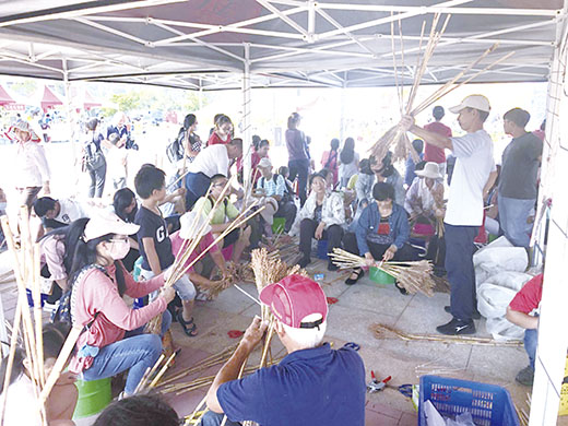 金沙鎮2018高粱老街風獅爺文化季,除了由鎮公所規劃的系列活動外,金門縣農業試驗所也配合活動提前種植高粱,並於昨日上、下午辦理四場次「高粱掃把DIY」,並邀請耆老到場面授機宜,吸引許多民眾排隊參與,多位外籍教師也參與其中,體驗金門這項傳統技藝。 金門縣農業試驗所配合活動於6月初便開始種植北掃品種高粱,9月上旬進行採收作業及後續人力作業進行乾燥、葉片拔除、高粱脫粒等程序。昨日上午由所長李廣榮率領團隊到場服務,也邀耆老及員工現場指導,傳授這項傳統技藝,深受民眾歡迎。農試所所長李廣榮表示,希望透過活動將這項金門特有的傳統文化、技藝繼續傳承下去。
