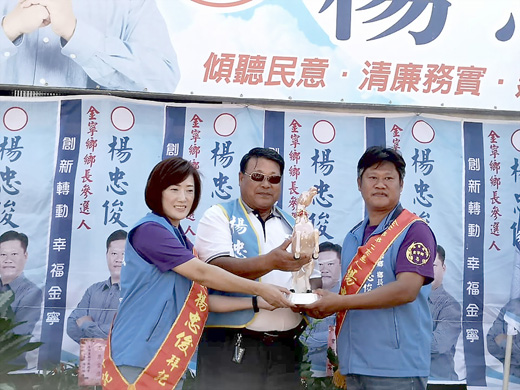 金寧鄉長候選人楊忠俊於昨日假雙忠廟廟埕舉行競選服務處成立大會,鄉里賢達皆到場為其加油助勢,希望能繼楊清國之後,楊氏子弟再為金寧鄉服務。楊忠俊以「傾聽民意、清廉務實、建構創新」為參選理念,希望打造金寧鄉成為金門的副都心。 昨日上午十時楊忠俊於湖埔的競選服務處成立,立委楊鎮浯、縣議員楊永立、湖峰楊氏宗親會理事長楊肅元、金門縣董楊宗親會理事長楊誠玉、三鄉聯誼會長老吳啟忠、湖峰楊氏宗親族長楊文瑞等鄉里、宗族的賢達皆到場與會,讚許楊忠俊為人正派、有服務的熱忱、更具有多年的行政經驗,定能為金寧鄉創造更璀璨的未來。競選總部主任委員楊誠璽推許楊忠俊為鄉親服務的決心,毅然將服務已廿五年的公職辭去,更走訪鄉內的各個角落,傾聽鄉民所需。在授旗、致贈戰馬、好彩頭、包粽等各含吉祥意喻的物件後,競選總部便正式為鄉親服務。 楊忠俊的競選政見有十四項,臚列如下:一、「以人為本,以民意為優先」堅持鄉務施政透明化。二、「老弱婦孺,關懷從心出發」通報服務網路即時化。三、「社區活化,營造樂活優先」愛鄉愛土在地公共化。四、「學區連結,多元學習提升」教育資源運用極大化。五、「托育長照,強化社照機能」落實社區照護具體化。六、「傾聽民意,提升公共參與」政策執行精確優質化。七、「轉型正義,捍衛鄉土歸民」鄉親權益保障明確化。八、「資源整合,闢劃亮點建設」公共資源運用最大化。九、「地盡其利,落實土地正義」爭取土地重劃效益化。十、「民生建設,道網連結暢通」設施建置健康友善化。十一、「地方創生,營造金寧大學城」以金門大學為中心,連結安岐閩南專用開發區及寧中學區,規劃大型綜合性人文、運動多功能場館,帶動區域亮點,打造年青人共識的生活圈。十二、「環境保育,打造金寧黃金海岸」打造西從湖下起、慈堤三角堡、雙鯉烏沙頭、南北山蚵田、斷崖播音站、蓮穴關帝廟、決戰沙崗段、英靈萬人塚、安岐風獅爺、湖南遭遇戰、鎮西接頂堡、后湖白沙灘、挖蛤又戲水、東北季風強、闢建海生館,等一序列觀光鏈遊程。十三、「農村再生,打造農觀體驗區」梳理區域農特產,促成農、經、旅宿結合,建構社區產業特色及遊憩休旅平台。十四、「創新造鎮,擘劃副都風華」以盤山為中心,聯繫當地多條交通幹道,再造頂堡商圈,擘劃鎮西風華,打造金門副都心。