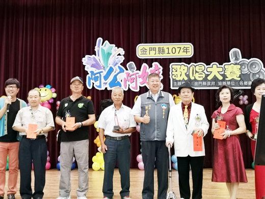 「再唱一首思想起~」阿公阿嬤歌唱大賽假金城國中藝文中心舉辦,不少參賽的長者們盛裝赴會,彷彿是參加金曲獎般的慎重以待。共有七十人由各鄉鎮報名參賽,最後評選出前六名及六個特殊獎項,冠軍由顏兆睦奪得。 縣政府為了提倡長者正當的休閒活動和聯繫長者之間的感情,所以近年在重陽節前舉辦了這樣的活動。許多長者連續幾年參加歌唱比賽,已是比賽的熟面孔,去年拿到最佳造型獎的辛甘治,今年仍由她抱走這個獎項,林繡英、鄭大明、洪清潭則坐穩這二年的前五名之列。 舞台上有的長者穿著一襲的亮片裝,也有穿著花旗袍登台的,還有位阿公拿著一閃一閃的LED瓶子為自己增色添彩,為了歌唱大賽,無不使出渾身解數,更動員了朋友,做為表演時的伴舞。 在長達四、五個小時的比賽後,評選出第一名顏兆睦、第二名林繡英、第三名鄭大明、第四名許維銘、第五名洪清潭、第六名蔡安慈;另頒發六個特殊獎項,最佳造型獎辛甘治、最佳台風獎李木、最佳勇氣獎黃盤、最佳人氣獎吳再發、最佳精神獎李麗華、特別獎吳文藩。 秘書長林德恭也藉著活動說明政府正著手進行的長照政策及共餐,希望長者能安心於金門這塊土地上養老,能高興的唱歌。