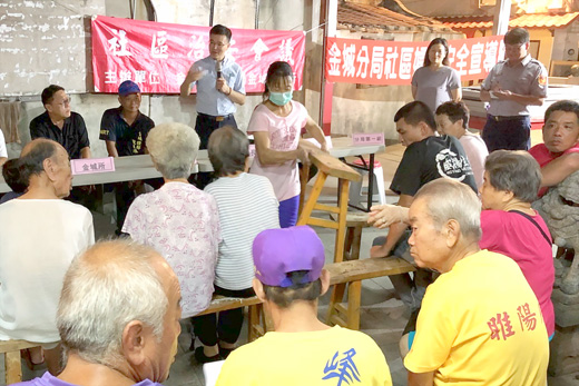 金城分局金城派出所於北門里舉辦「社區治安會議」,金城分局長郝心誠親自率員出席,傾聽民眾建言,希望藉由警民合作共同找出治安死角與問題,讓地方的治安環境越來越好,民眾安居樂業。 該項「社區治安會議」,金城分局長郝心誠親自率員出席,六十餘位里民扶老攜幼參與,現場分別由縣警局防治科、金城分局、縣府社會處、財政處、消防局等代表也到場參與並宣導「反詐騙」、「反毒品」、「反賄選」、「交通安全」、「家暴防制」、「菸酒管理」及「消防安全」等重要資訊。 會中,金城分局偵查隊特別宣達近期政府大力推動安居緝毒專案,社區治安要好,首要之務就是打擊各種可能的毒品來源,並揪出所有的毒品人口,而其關鍵則有賴於所有居民的共同舉報,畢竟警力有限,民力無窮,呼籲民眾踴躍加入「反毒友善通報網」,期望全民共同參與打擊毒品犯罪,讓社會更安定。 金城派出所亦宣導今年11月底五合一地方公職人員選舉,為淨化地區選風,端正選舉風氣,呼籲民眾如發現賄選情事,要有道德勇氣向檢警機關提出檢舉,進行一場乾淨的選舉。 會中也透過有獎徵答方式,讓民眾在問答間思考熟悉宣導內容,了解如何保護自身安全,民眾爭相搶答,反應熱絡,在寓教於樂中,加深民眾印象,進一步將重要宣導知識及自身安全的觀念落實於生活中。 金城分局分局長郝心誠表示,「社區治安會議」的目的就是傾聽民眾建言、了解民眾需求,並於最快時間內做出回應,至於權責以外的議題也會向相關機關反映,以提供民眾最滿意、最貼心的服務,拉近里民與警察彼此間的距離,警民協力創造美好的社區治安環境。