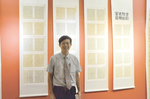 金剛般若波羅蜜經總共有五千餘字,書畫名家洪明燦這回在金門縣文化局推出「平生寄懷│洪明燦書畫展」,在創作八十四件書法和水墨畫作品展出,其中這一框有三十八張組成的小楷作品,可以用「全神貫注」來看待它,難怪展場參觀者都嘖嘖稱奇叫好! 洪明燦以一天寫一張的作法,全神貫注投入金剛般若波羅蜜經抄寫,每字大小幾乎都差不多,讓參觀者是嘖嘖稱奇,大大讚賞。 洪明燦書畫展,展期到9月27日止,歡迎鄉親踴躍到場觀展,領略其書畫藝術之美。