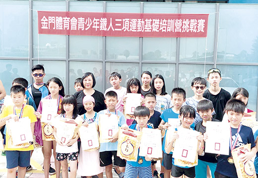 金門體育會鐵人三項運動委員會昨(二十六)日舉辦一項「一○七年金門鐵人三項青少年基礎培訓營挑戰賽」活動,透過競賽培養青少年們建立正當的休閒運動之習慣。 這項「金門鐵人三項青少年基礎培訓營挑戰賽」由金門縣政府、金門縣議會指導,金門體育會主辦,金門體育會鐵人三項運動委員會承辦,於昨日上午六時十分左右,檢錄報到後展開各組比賽,活動共分為親子男(女)生組、國小男(女)生組、國中男(女)生組等六組。 承辦單位表示,這項挑戰賽,分為游泳、自由車以及跑步等項目,藉由結合三項運動讓青少年運動生活化、休閒多元化、建立正當休閒娛樂活動,並奠立多元化運動興趣,培養技能,建立終生運動健康生活,同時也激勵青少年及青年自我挑戰,塑造積極進取之生活態度。 而活動各組別規則難度各異,親子組方面,須完成游泳二十五公尺、自由車(網球場外圍一圈)、路跑(繞體育場四百公尺);國小組方面,須完成游泳五十公尺、延平郡王祠遶一圈(四點四公里)、路跑(體育場八百公尺);國中組方面,須完成游泳五十公尺、延平郡王祠遶兩圈(八點八公里)路跑(體育場兩千公尺)。 昨日的挑戰賽活動只要參加並完成全程比賽者,就可以獲頒完成紀念牌乙枚,而主辦單位也選出數名優勝者,頒發獎狀與獎品。 親子女生組:第一名,廖千媛。第二名,楊熹。第三名,黃子瑄。第四名,陳玥慈。 親子男生組:第一名,蔡紹威。第二名,洪丹陽。第三名,倪恩予。 國小女生組:第一名,唐詩穎。第二名,洪于晴。第三名,楊恭仁。 國小男生組:第一名,林士愷。第二名,張奇恩。第三名,陳芓安。第四名,洪翊軒。第五名,楊亞駱。第六名,呂虹毅。第七名,詹壬瑋。第八名,王奕程。 國中女生組:第一名,陳語蕎。 國中男生組:第一名,林伯謙。第二名,蔣東邑。第三名,吳亭佐。第四名,洪崇勝。