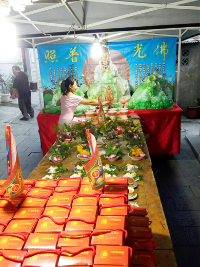 昨(二十六)日為農曆七月十六日,也是金城鎮北門境一年一度的普渡,昨日在北門境內,像是福德宮、北鎮廟等廟宇都設有普渡公壇祭拜好兄弟,而住在中興路以及民生路附近的各個家戶,也都會在自家門口設普渡桌。位於總兵署後方的福德宮,依循往例也準備了豐盛的祭品來祭祀好兄弟。 華人習俗當中,每到了農曆七月時就是民間所俗稱的「鬼月」,同時在農曆七月十五日的中元節這天,每個家庭都習慣在自家準備豐盛的祭品,來祭拜普渡好兄弟。 金城東門、西門、南門、北門四境因為人口眾多,衍生出不同於一般中元普渡在農曆十五,而是各自選在不同時間辦理。金城鎮分東、西、南、北門四里,每里普渡亦不同,昨日七月十六日是北門境,今日農曆七月十七日則為東門境、而西門境在七月二十六日、南門選在七月二十日。