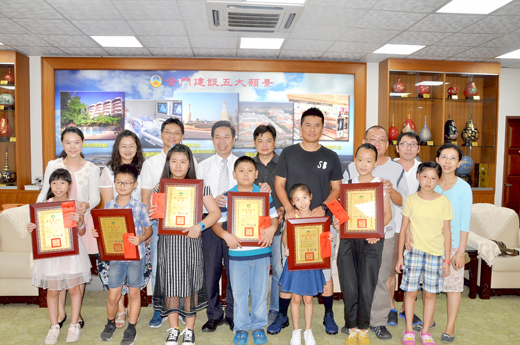由縣府首次舉辦的「小小解說員夏令培訓營」,5位表現最優之「小小金牌解說員」及1位「特別表現獎」學員昨在家長陪同下抵縣府接受縣長陳福海親自頒發獎狀及獎金,肯定大家優異的表現。 陳福海說,金門是個有故事的島嶼,透過基礎紮根,從小培養小朋友建立愛鄉情懷與環境素養,才能讓更多好朋友喜歡金門、愛上金門。感謝觀光處舉辦這樣有意義的活動,讓小朋友藉著一連串基礎的訓練,蓄積說故事的能量,未來更有機會參與觀光處活動或景點解說服務,成為金門導覽解說小小尖兵,一同推廣行銷家鄉的美麗。 縣府觀光處指出,金門縣政府為增進國小學童對金門縣的了解,建立小朋友的自信心,於8月10日首次舉辦「小小解說員夏令培訓營」,並於15日完成第2階段口試,計有27名小朋友參訓,最終評選出5位「小小金牌解說員」及1位「特別表現獎」學員。 觀光處表示,此次活動參加對象為暑假後升國小4-6年級的學童,於8月10日至12日及15日辦理為期4天培訓營,第1階段室內課程由專業解說人員教授小朋友說故事及解說技巧,並安排分組實地導覽莒光樓、總兵署、金城民防坑道等具代表性之觀光景點。 此外,為提升學員體能肢體表現,特別安排於柳營軍事體驗園區內進行戶外訓練。經過第1階段整整3天的充實訓練,帶領學童從遊客的角度認識景點,漸進轉變成為小小解說員介紹多彩金門,從原來的羞赧青澀、頻吃螺絲,進步到能自信大方的導覽解說金門景點,學員們個個表現可圈可點,精神可嘉。 觀光處進一步表示,小小解說員夏令培訓營為縣府首次舉辦,第1階段考評邀請縣府特約解說員蕭鳳玉、金城國中教師顏佩能擔任評審,第2階段聘請退休校長暨縣府觀光處顧問陳為學、金門縣領團解說員協會及金門縣導遊服務人員職業工會理事長陳成基、金門大學觀光系副教授張梨慧擔任評審委員,計有蔡旭知等22位學童完成全程培訓及口試考核合格,並評選出最優5位小小金牌解說員,分別為中正國小楊苡辰、金沙國小陶芓榆、中正國小許靖沂、開瑄國小蔡旭知、金湖國小楊寀妍,各獲頒金門縣政府「小小金牌解說員」獎狀乙幀及獎金5,000元。另金湖國小學員謝宜宸成績表現與前五位旗鼓相當,也頒予「特別表現獎」獎狀乙幀及獎金2,000元,以資鼓勵。 昨日6位小朋友在縣府受獎時,蔡旭知和謝宜宸還勇敢的接受縣長的「隨堂考」,除了上場解說莒光樓,也展現培訓成果。兩人對莒光樓如數家珍,娓娓道來課堂上所學。陳福海說,這就是未來要培養的戰將,希望隨時有需要時,小小解說員都可以站出來。 陳福海說,金門一定要走觀光路線,不僅基礎建設刻不容緩,說故事也很重要,才能讓旅客深度旅遊,不再走馬看花。他笑說,有時小朋友的解說比官員還強,希望小朋友可以幫金門說故事,引領更多人認識金門。而除了小小解說員,陳福海也希望每個鄉親都來說故事。