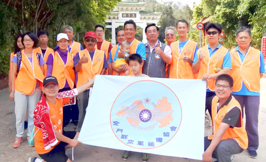 慶祝空軍節,金門縣空軍後備協會12日辦理親子淨山健行暨會員大會活動,理事長李應文與會員及眷屬一同參與,副縣長吳成典等人也前往致意,提前祝賀大家空軍節快樂。與會親子登太武遠眺金門風光,也動手撿拾垃圾,恢復太武山沿途美麗的風景,用行動表達對金門土地環境盡一分心力,也讓八一四空軍節慶活動更有意義。 今為八一四空軍節,金門縣空軍後備協會於12日下午3時許辦理慶祝814空軍節-親山淨山健行活動,理事長李應文率同多位會員闔家登太武淨山,大人小孩穿著橘色服務背心,手持夾子、垃圾袋等自玉章路口出發,清除太武山沿途垃圾,還給山林原有的美麗面容。淨山活動為期至五時許,會員親子於假日登山健身又力行環境,讓今年空軍節慶祝活動更具意義。 而在登山健行活動會後,也於盈春閣餐廳召開第四屆第二次會員大會,進行會務報告。內容包括,金門縣空軍後備協會於106年8月20日召開第四屆第一次理監事聯席會議,並選舉第四屆理事長及常務監事,選舉結果由李應文當選理事長、李新團當選常務監事。106年12月24日辦理第四屆理事長暨理監事頒證儀式及第二次理監事聯席會議。理事長李應文上任後於106年9月3日帶領會員參加軍警公教退休人員反年改遊行活動。9月22日至9月25日辦理會員自強活動前往中國大陸武夷山。並且積極參與金門縣榮民服務處辦理之「退除役官兵懇談會暨社團聯繫會報」,106年由常務理事呂清豐、理事陳志成代表出席;今年則由理事長李應文出席參與。而關於107年會員大會紀念品「會帽」200頂已製作完成,感謝陳宗院常務理事贊助費用。「主題紀念酒」也已製作完並於107年度會員大會中致送每年都有繳交會費之會員。另外,關於會員婚喪喜慶也以登報、致贈花籃等方式祝賀及致意。 會中也討論通過四項提案包括,請通過本會108年工作計劃案。108年度收支預算案。107年度收支決算案。其中第四案,章程第卅三條規定關於會員入會費與常年會費金額修正案。根據說明,該會章程第卅三條規定會員入會費為新台幣500元、常年會費為新台幣1000元,經第4屆第3次理、監事聯席會決議通過,擬修改入會費為新台幣1000元,常年會費維持為新台幣1000元。12日經過會員大會決議,入會費為新台幣1000元,常年會費為新台幣500元。 會後也辦理聯誼餐會,副縣長吳成典、副議長謝東龍、榮服處副處長宋俊陽、議員陳滄江、金城代表會主席陳天成、立法委員楊鎮浯服務處主任孫國智(協會理事)、國民黨金門縣黨部主委林芳旋、協會顧問楊其勳(金沙湖畔總經理)等貴賓也前往參與,和一百餘位會員及眷屬等提前慶祝空軍節。