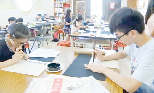 張文夏黃玉燕教育基金會「107年節約用水夏令營書法班」13日起開跑,吸引學子以及親子參與,跟隨張水團老師的指導,從執筆開始學習寫字,箇中不乏有連續多年參與的學生,從中學到興趣;也有多位金沙國小書法社成員到場學習,希望精進書法技藝,寫出一手好字。 張文夏黃玉燕教育基金會「107年節約用水夏令營書法班」,將於8月13日起至8月17日止,假張文夏黃玉燕紀念館舉辦,邀請地區名書法家張水團到場指導,學童班(以金沙學區為主)於下午2時30分至4時30分上課;親子班則於每日晚間8時至10上課,學子、親子假日提筆練字,陶冶性情也練字,一舉數得。 該書法班已連續辦理12年,今年活動於13日開跑,同樣邀請基金會董事張水團義務指導,他首先帶學生了解何謂書法,並傳寫書法的要領,並要學子從正確執筆和坐姿開始,方能寫得久,經過練習才能寫得好。他也以永字八法書寫要領做介紹,並自行編寫教材帶領學子透過橫、豎、部首、字體佈局、運筆、結構等解析,也帶大家欣賞各家書體,告訴學童如何在字與字間、行與行間,求均衡、美觀及書法表現。 張文夏黃玉燕教育基金會「107年節約用水夏令營書法班」13日起至17日止舉辦,16日將舉行比賽,17日則安排由指導及主辦單位經濟部水利署、麗水策回整合行銷有限公司,到場進行節約用水等議題之專題演講及有獎徵答,並辦理結訓頒獎。